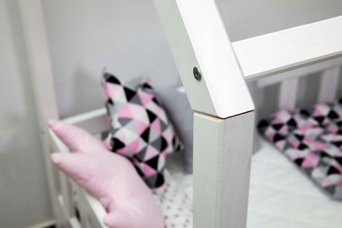 Детская кровать ДОМЕК белая – это воплощение детской мечты. Кровать обычно служит местом для сна, но это также идеальное место для ежедневных игр с братьями, сестрами и друзьями. Кровать-домик очень прочная, изготовлена из массива сосны. Наша модель кровати прекрасно впишется в любое место, а благодаря небольшому весу ее время от времени можно переносить в другое место.Можно купить матрас и ящик.