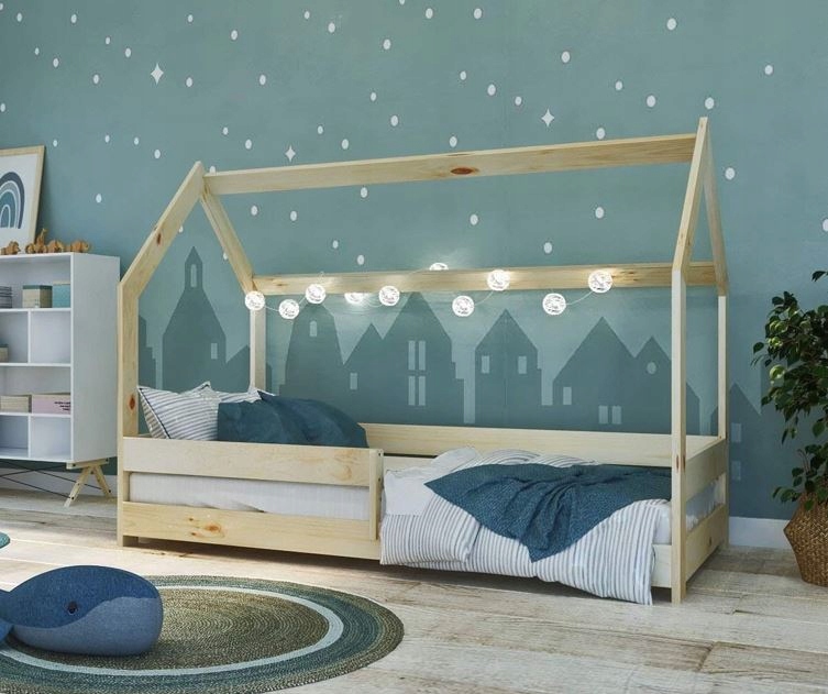 Детский кровать, сделанный из натурального дерева, в очаровательной форме дома - сосна. Идеально подходит для комнаты каждого малыша. h1>
