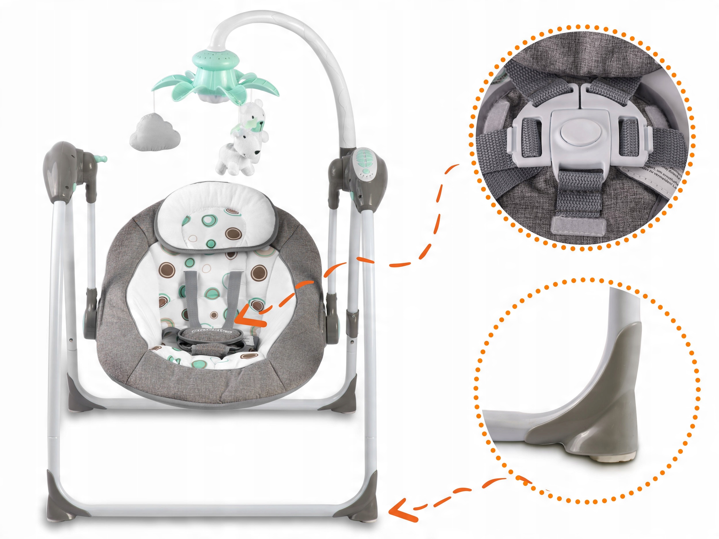 Использование качалки станет для вас детской игрой! Вы можете быстро настроить режим покачивания, установить подходящую мелодию, изменить громкость музыки или установить таймер!