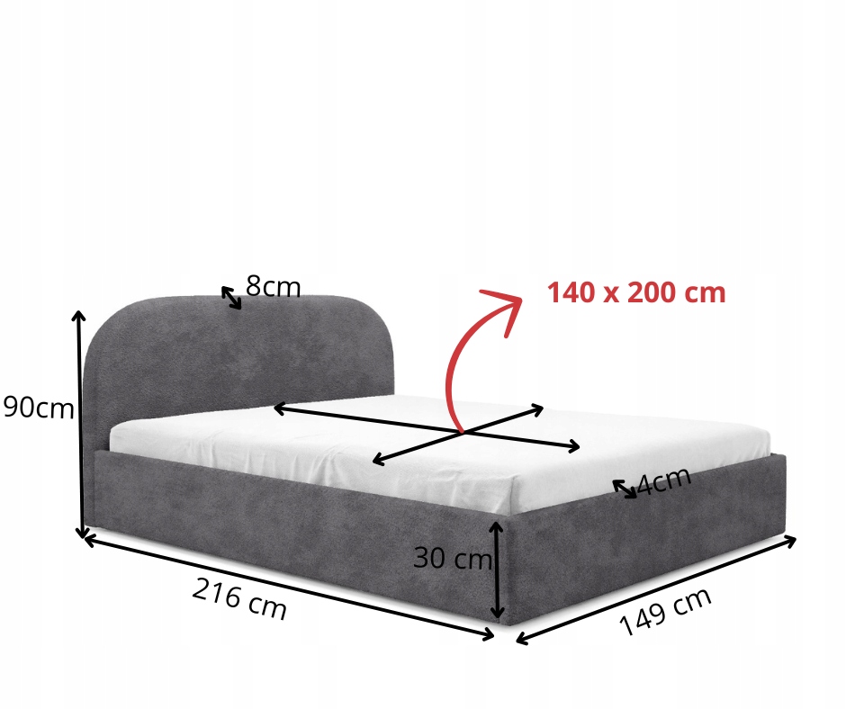 В варианте с металлическим каркасом благодаря газлифтам открывание контейнера для постельного белья происходит легко и удобно, позволяя хранить постельные принадлежности или другие предметы. Закругленное изголовье придает кровати элегантность и делает ее не только местом для сна, но и украшением вашей спальни.