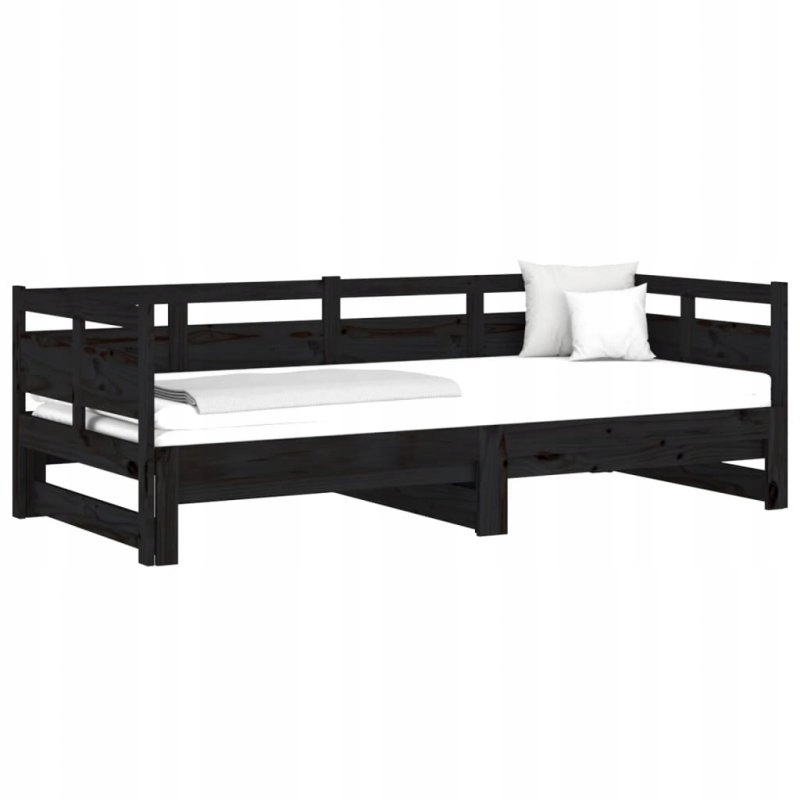 Раздвижная кровать, черный, массив сосны, 2х(80х200) см