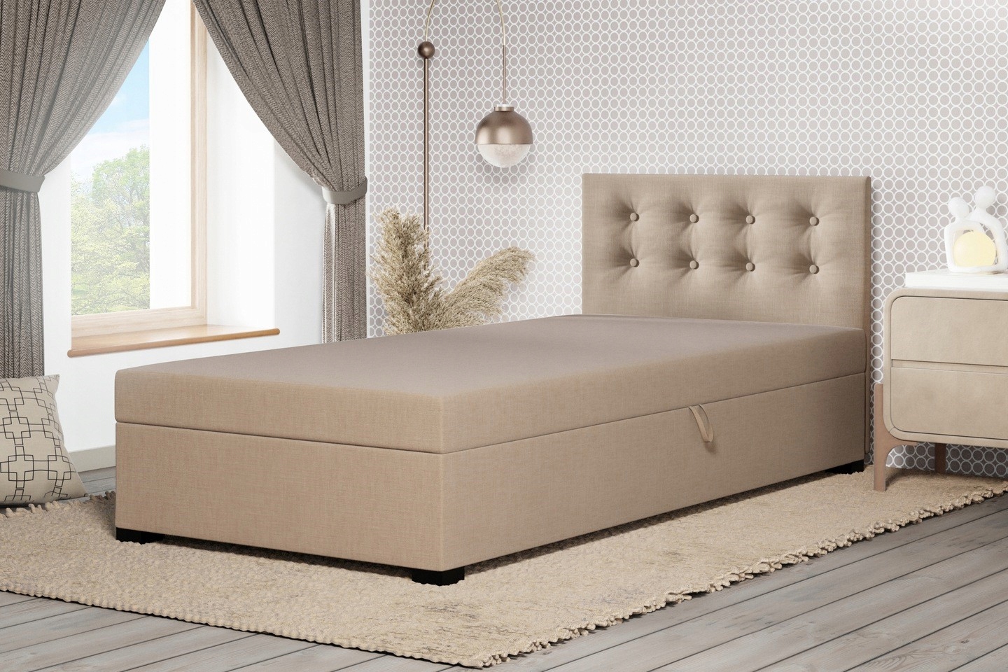 Односпальная кровать, гостиничный диван с контейнером и стеганым изголовьем