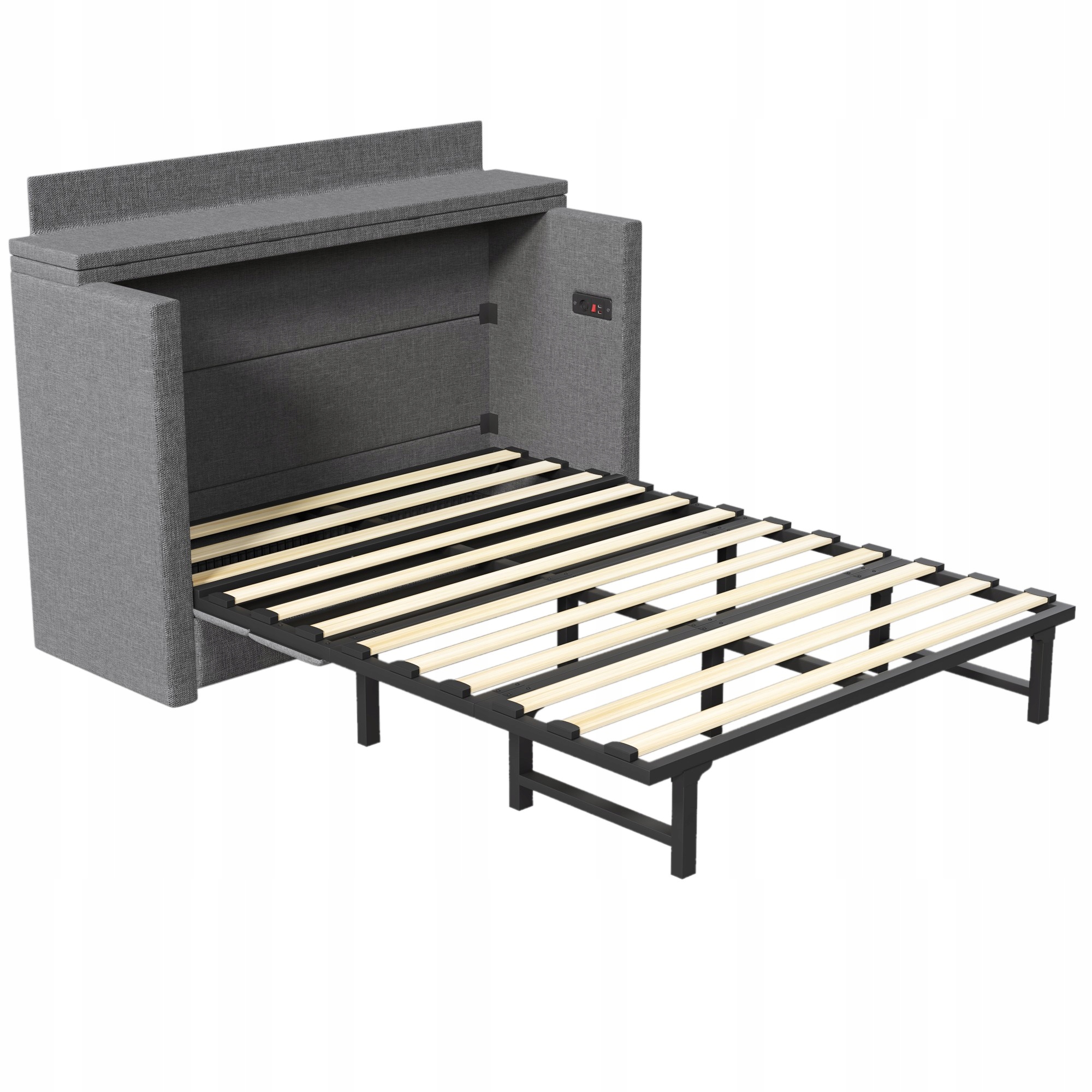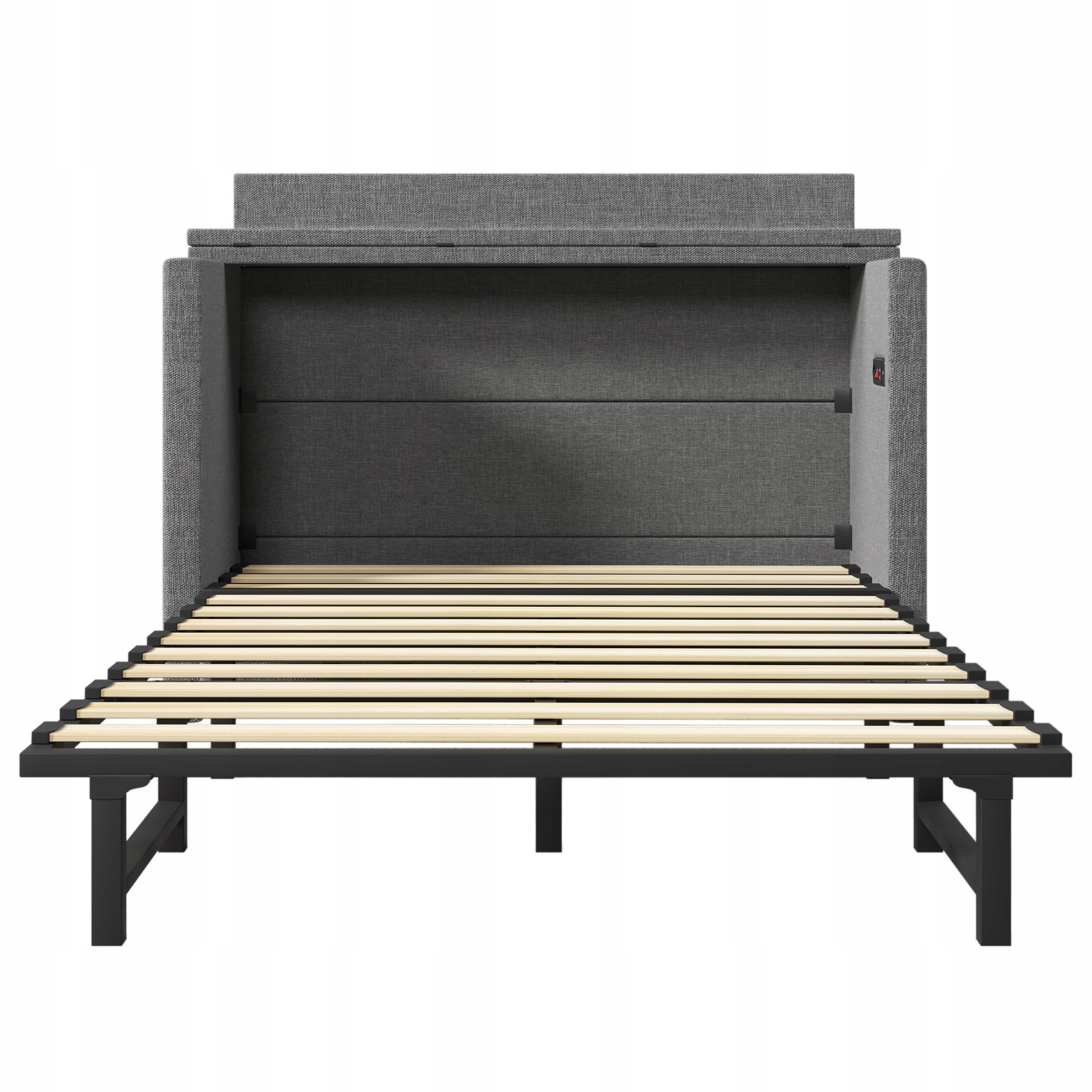 Кровать Мерфи 140 х 200 с одним ящиком, мобильная кровать, спрятанная в стену, с местом для хранения на кровати, с портами USB и Type C, складная кровать-платформа, без матраса, постельное белье серого цвета