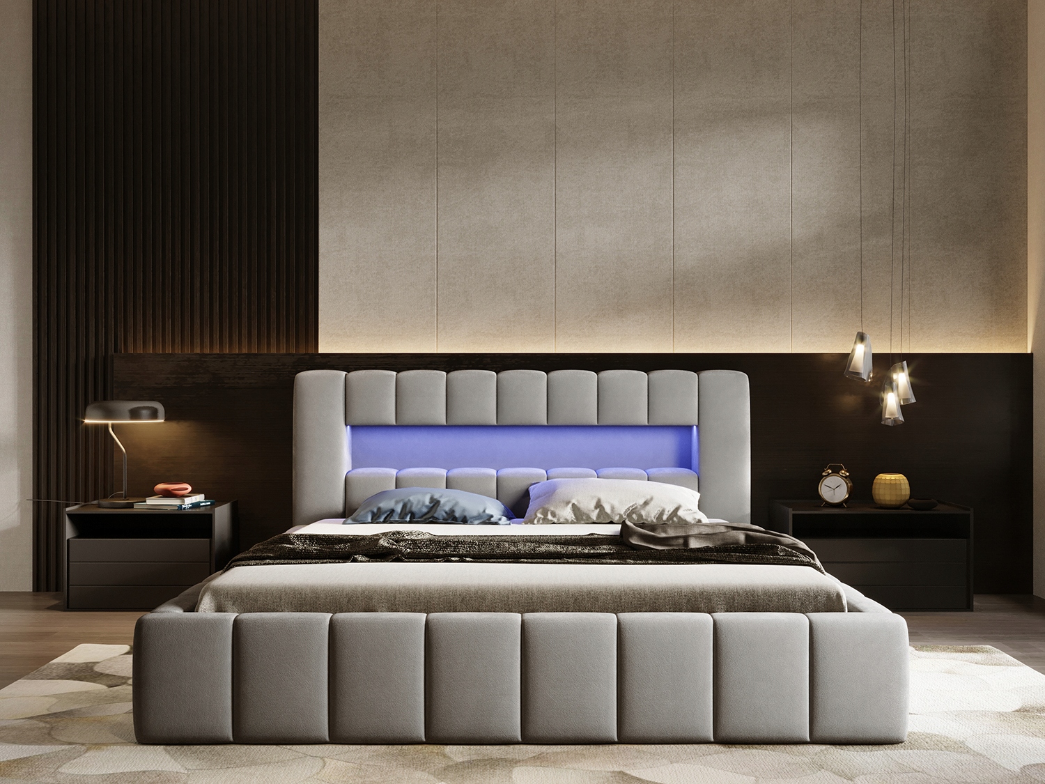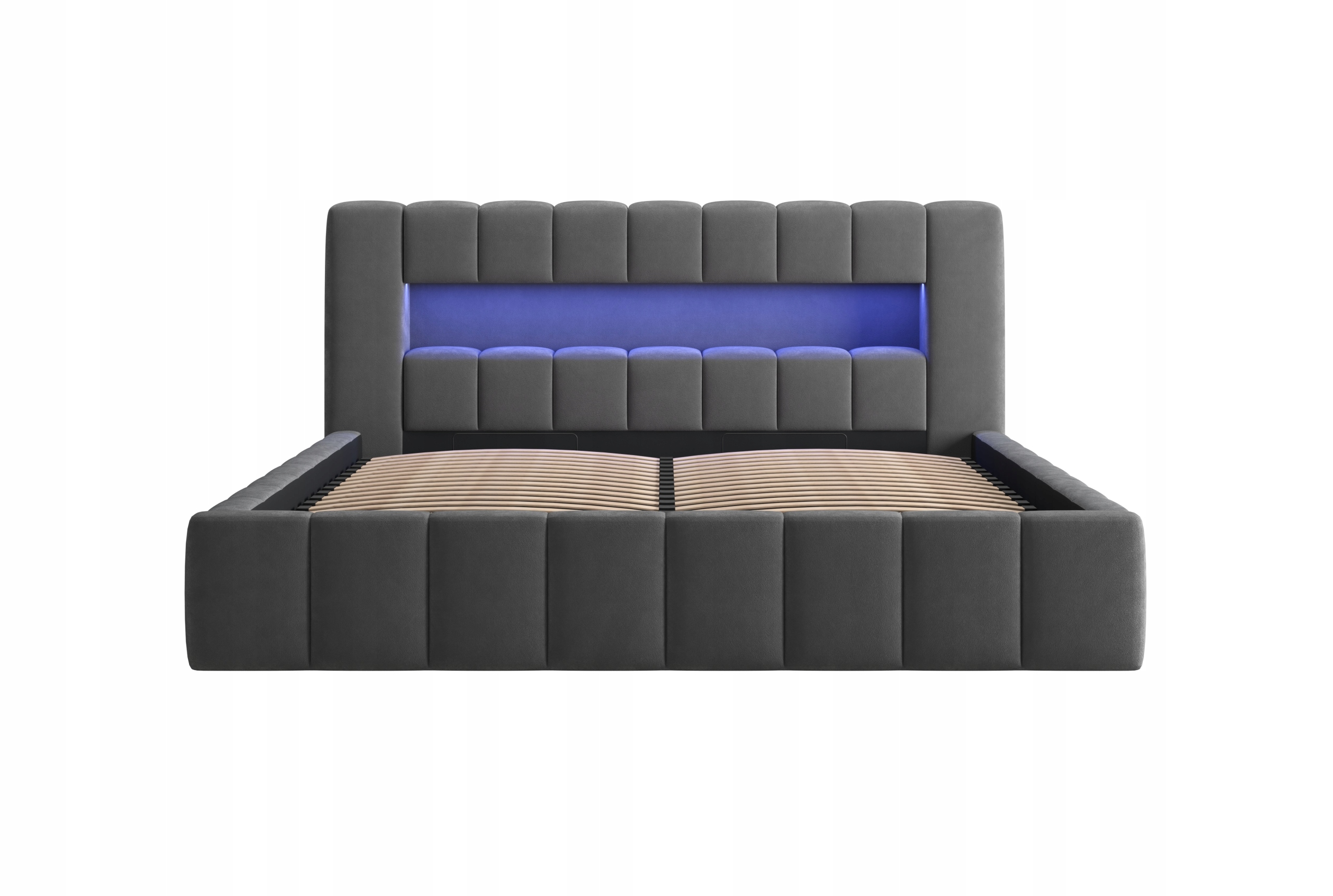 Удобная мягкая кровать AMARO 200Х200 см с контейнером для постельного белья и светодиодной подсветкой в подголовнике