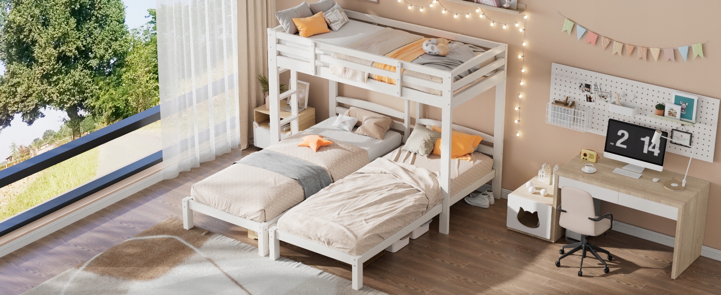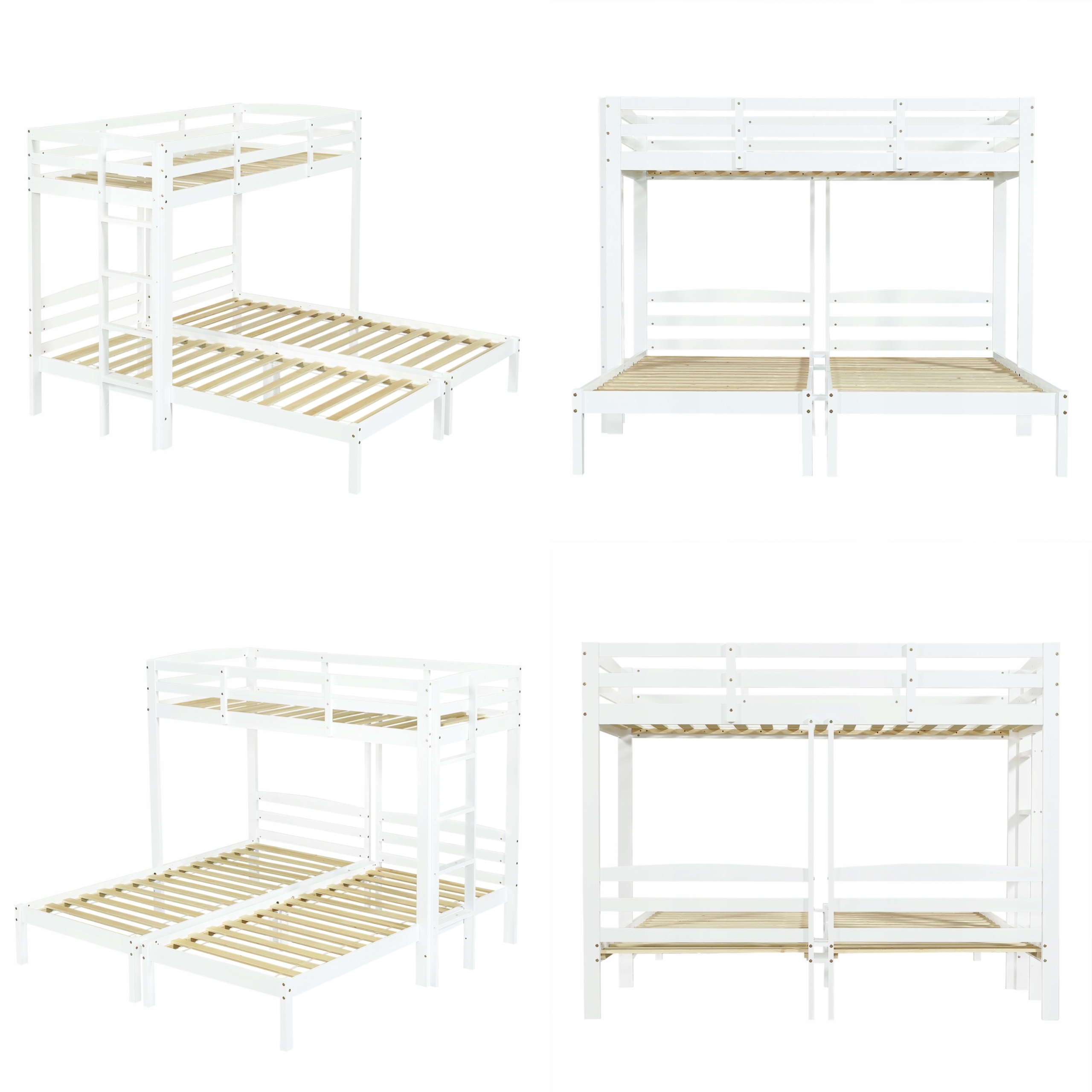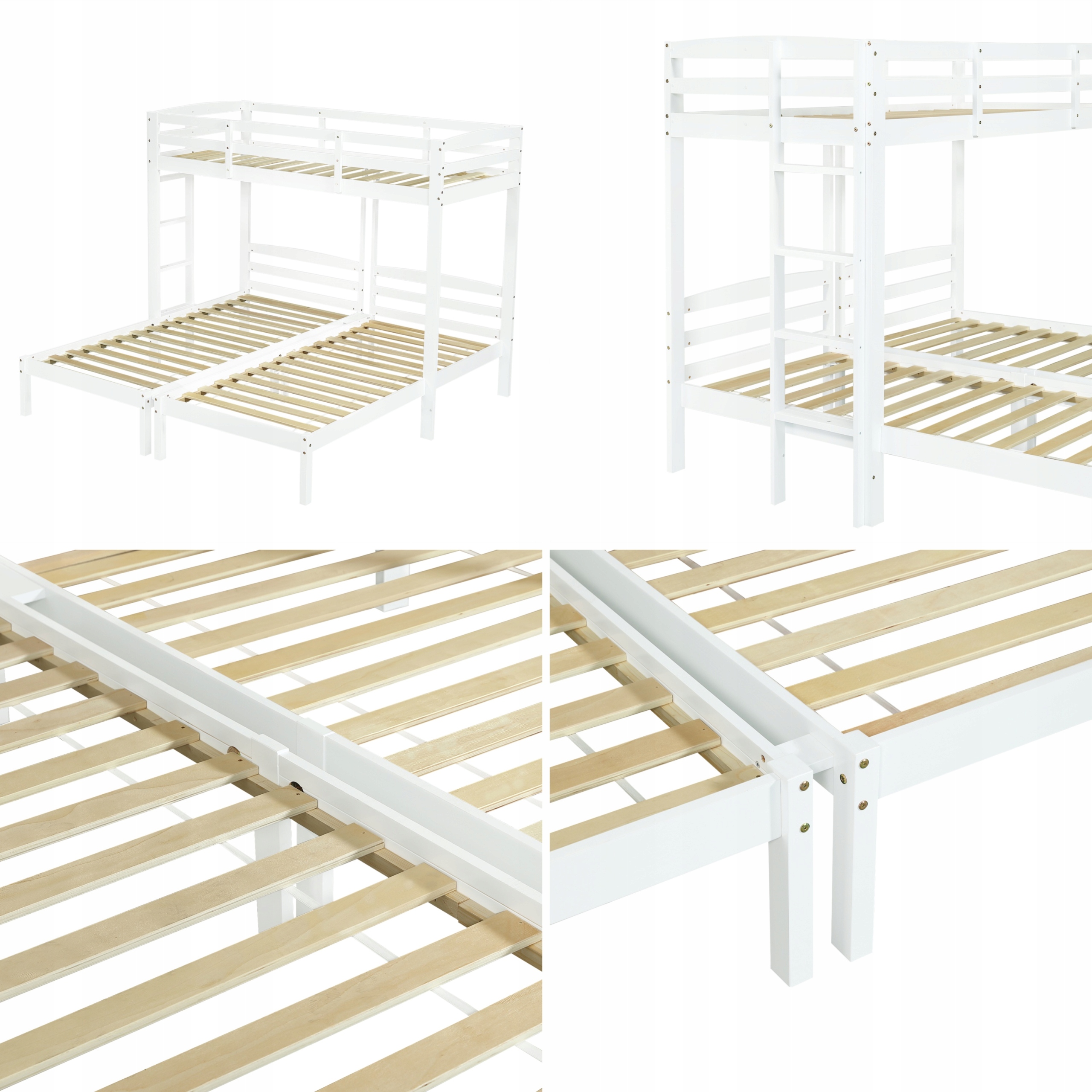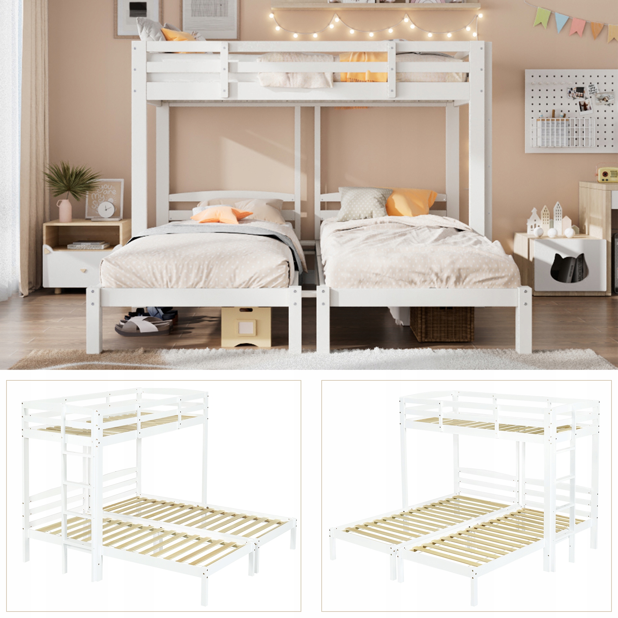 Трехвопульсная двухъярусная кровать, трехпользованная кровать с побочной лестницей для детей и молодежи, белый (90x200см)