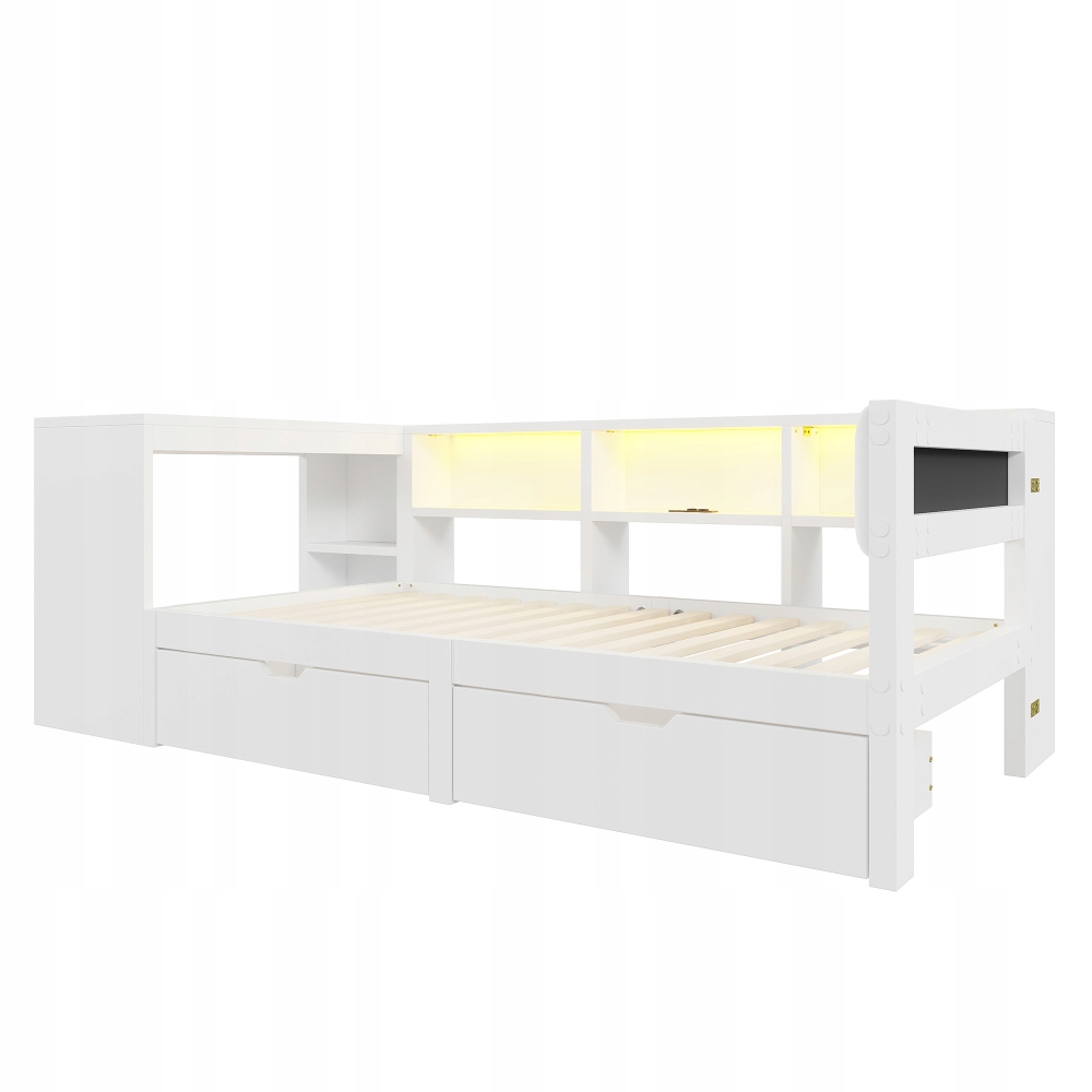 【Большое пространство для хранения】Кровать имеет встроенные полки и два ящика внизу для удобного и организованного хранения постельных принадлежностей, игрушек, мобильных телефонов и других предметов.