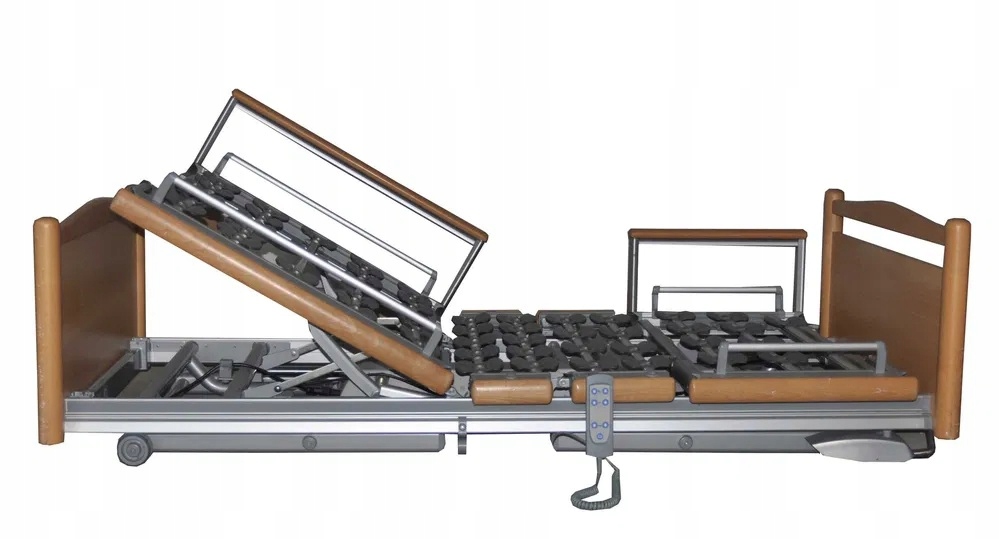 Электрическая реабилитационная кровать – это очень удобное удобство для пожилых людей, хронически больных, постоянно лежащих или имеющих проблемы с вставанием или сидением. Несомненным преимуществом кровати является ее простота в использовании, она позволяет пользователю принять удобное положение, например, лежа с поднятыми ногами или с опорой на спину. Кровать рассчитана на одного пользователя с максимальной массой тела 175 кг. Кровать оснащена колесами диаметром 125 мм, благодаря которым кровать можно перемещать по ровной поверхности во всех направлениях. Благодаря пульту дистанционного управления кровать может управляться электрически пользователем или лицом, осуществляющим уход.