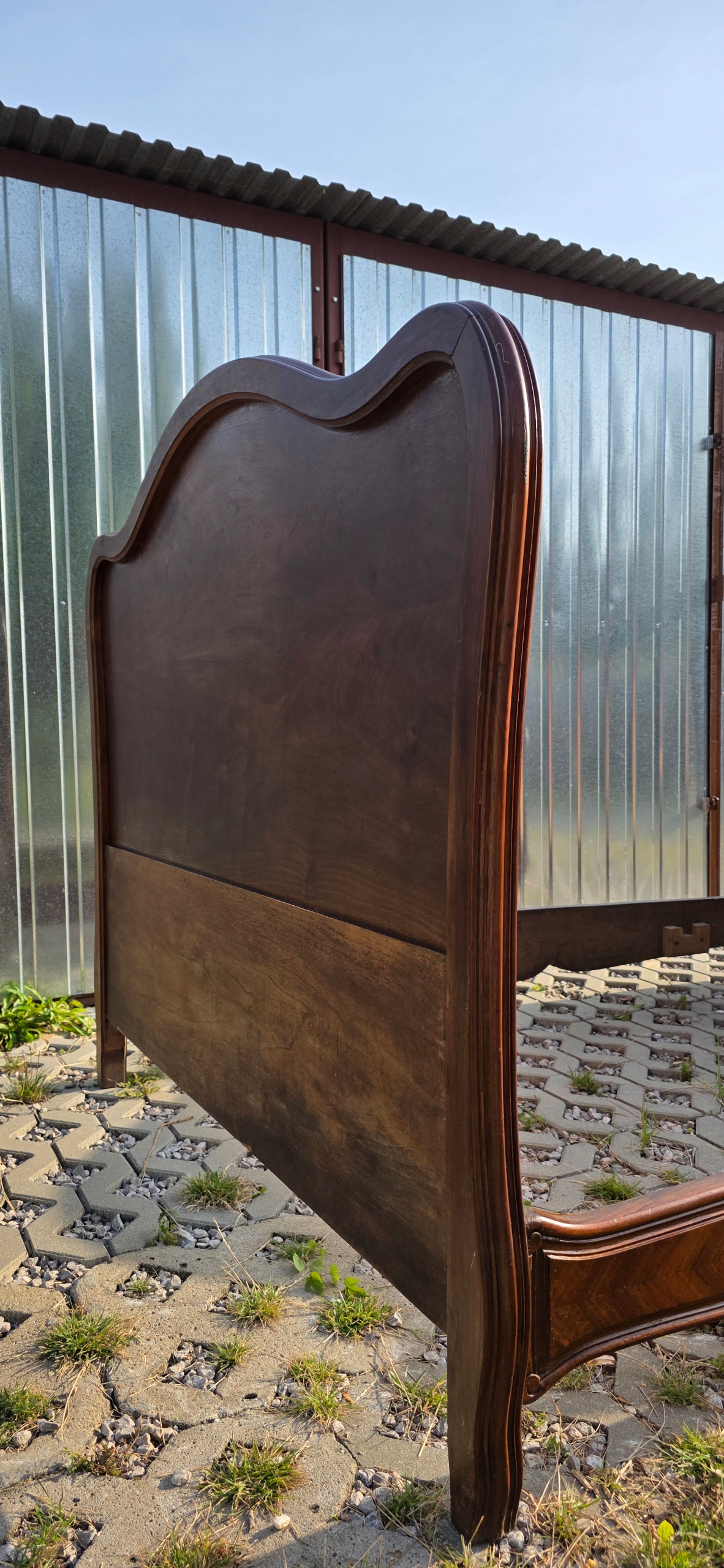 Кровать изготовлена из массива дерева, облицована шпоном ореха.
