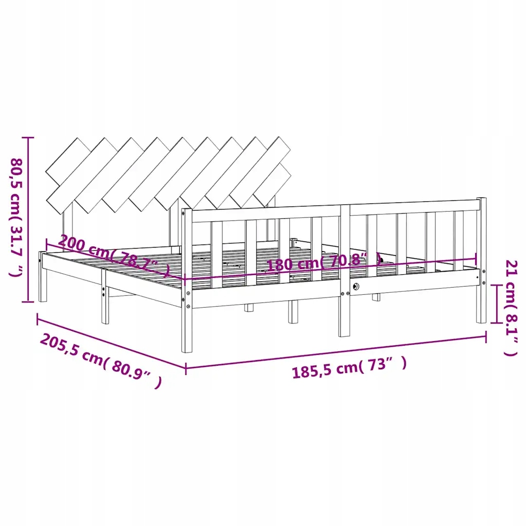 Кровать деревянная сосновая 205,5 х 185,5 х 80,5 см, необработанная, с изголовьем