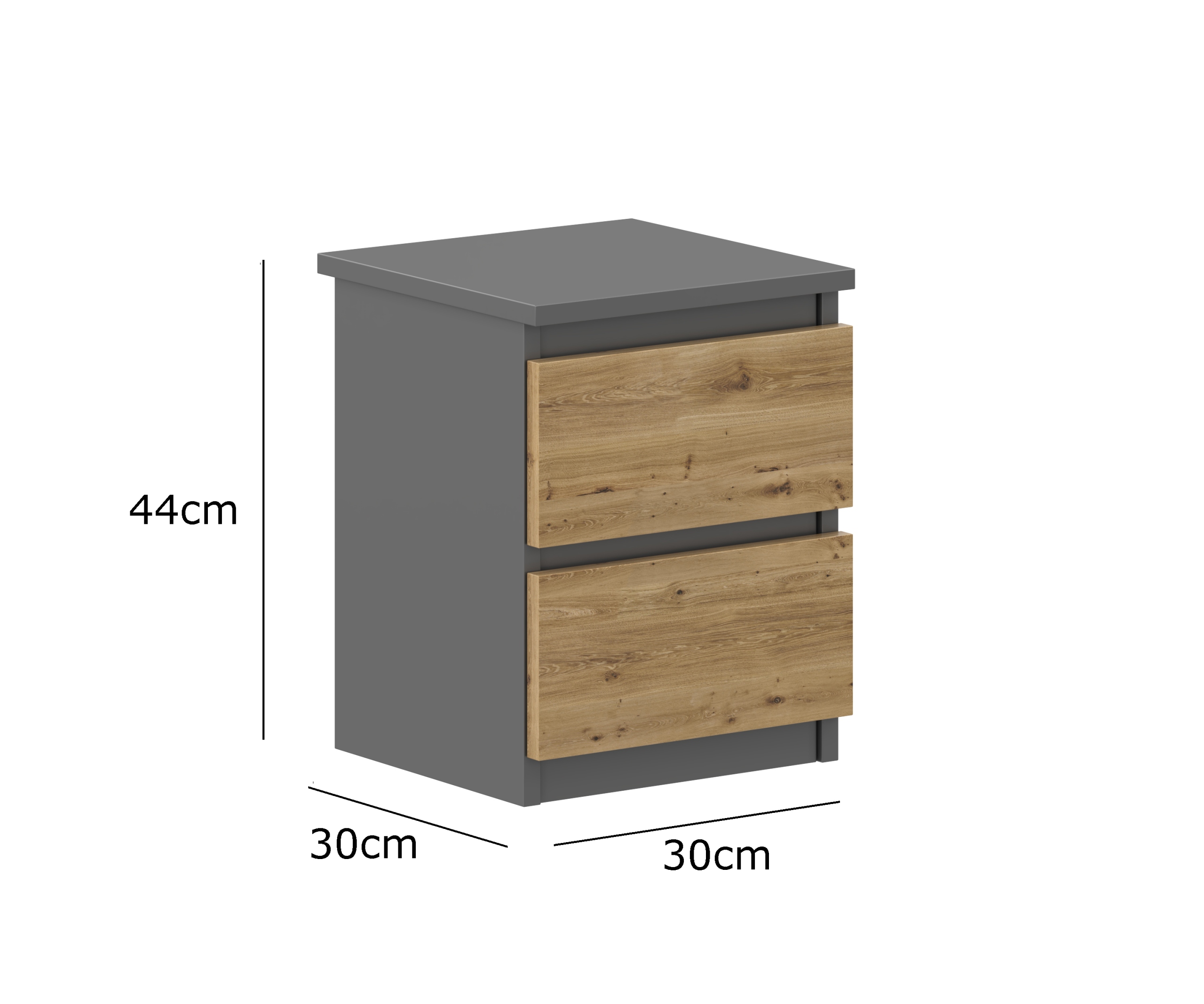Прикроватная столик прикроватная таблица для спальни 2 ящики установить графит дуб Wotan