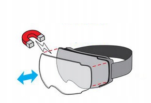 Линза очков крепится к нескольким сильным магнитам.