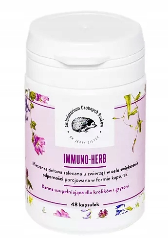 <р> Дополнительный корм для кроликов и грызунов. <р> Состав: смесь трав (эхинацея, элеутерококк, лишайник пушистый, ладанник серый, облепиха, гамамелис, гиностемма пятилистная, медуница пятнистая, алтей, бузина черная). <р> Способ применения: 1-2 капсулы на 1 килограмм массы тела 1-2 раза в день. Прикорм не должен превышать 5% суточной дозы пищи. <р> Упаковка: 48 капсул