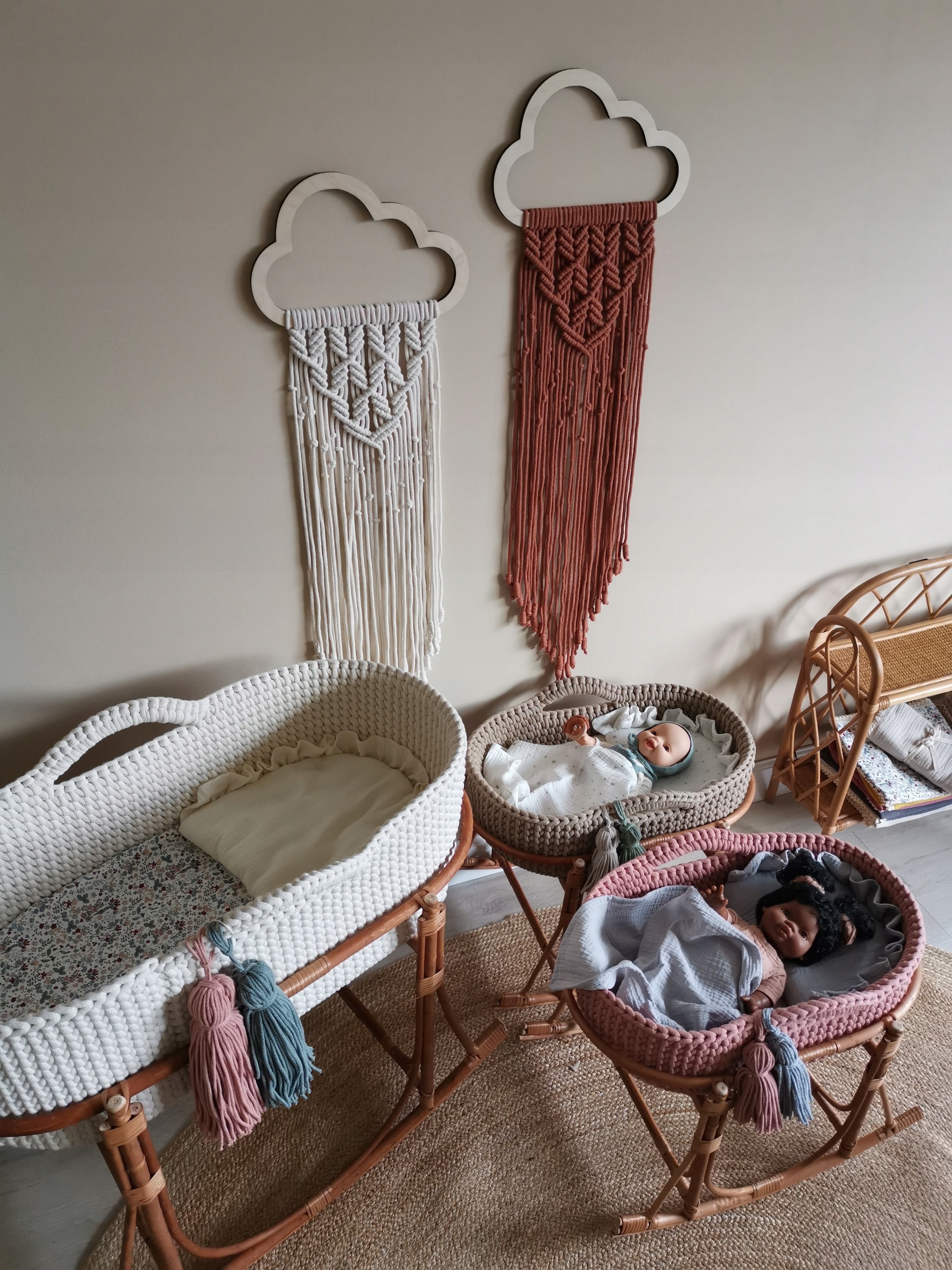 - кукольные корзины с комплектом постельного белья,