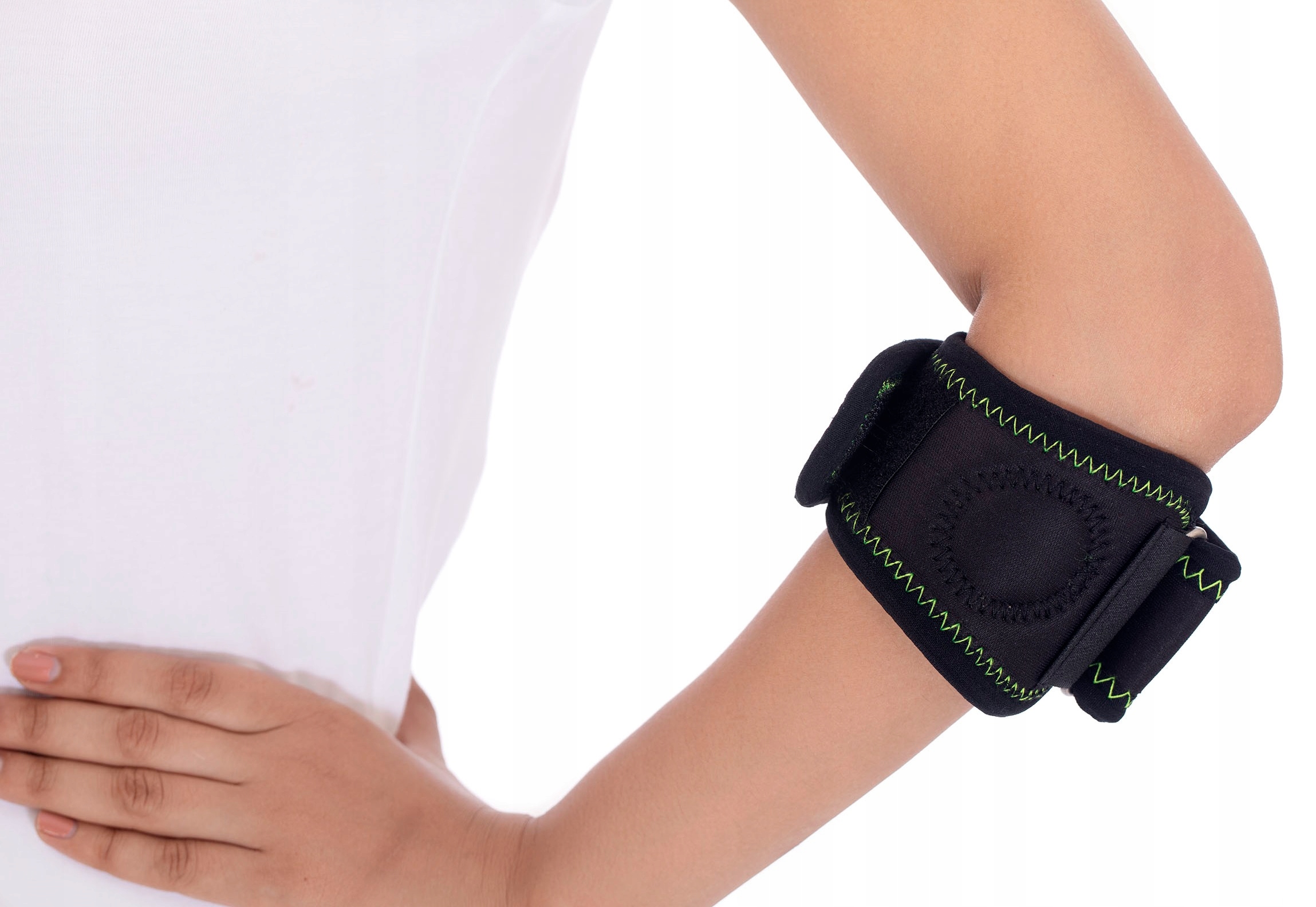 Эта модель локтевого стабилизатора чаще всего рекомендуется врачами-ортопедами и специалистами по реабилитации людям, страдающим воспалением надмыщелка плечевой кости и сухожилия запястья, известным как: теннисный локоть и локоть гольфиста. Натяжение и компрессия в месте боли позволяет уменьшить симптомы пациента и снизить риск углубления последствий травмы или перегрузки. Физиотерапевты часто советуют использовать его профилактически при повышенных физических нагрузках. Силиконовая вставка позволяет не только концентрировать давление в нужном месте, но и поглощать удары, возникающие во время физической активности. Он мягко массирует место повреждения или перегрузки, где локализуется боль. Ремешок был разработан таким образом, чтобы свести к минимуму риск смещения во время движений, что делает его использование максимально комфортным.