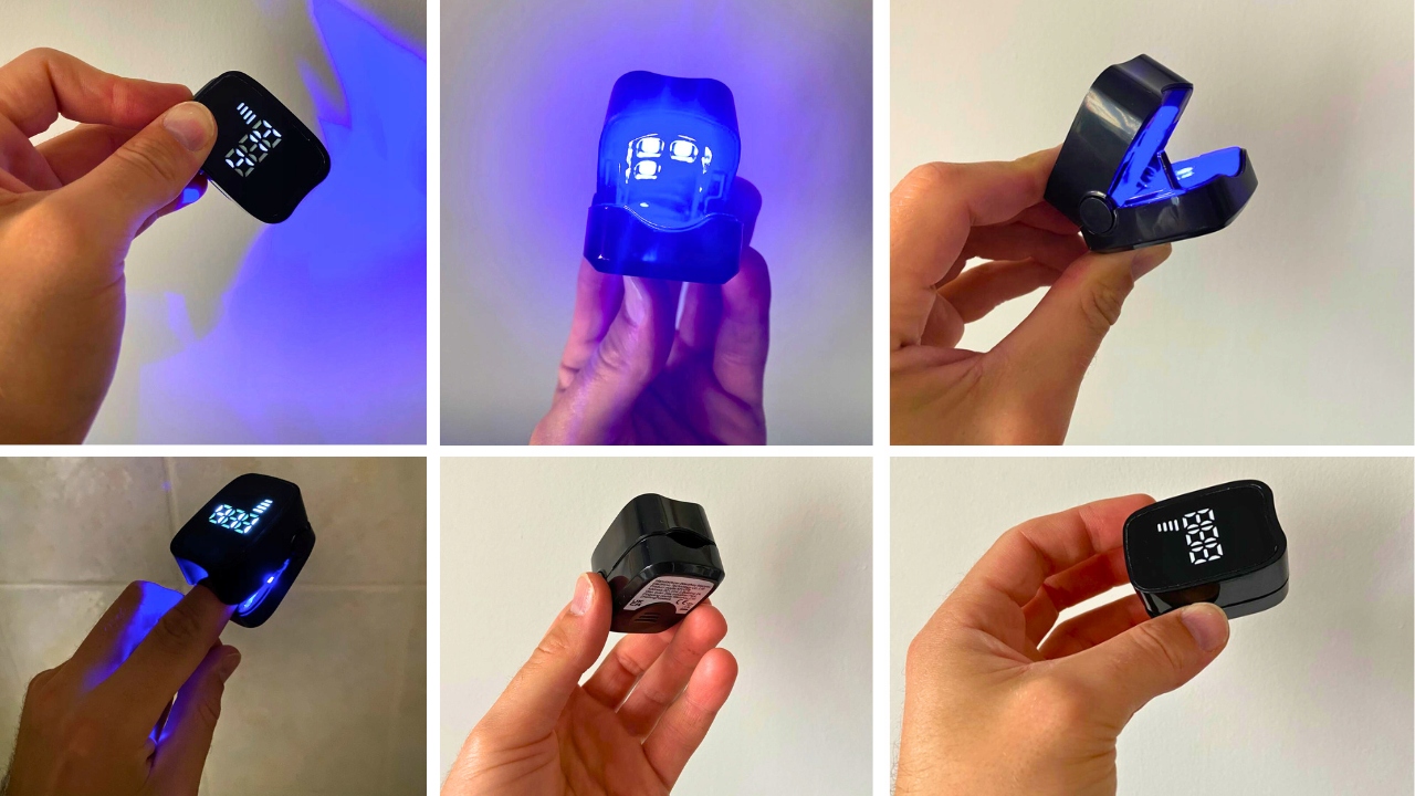 3 × синий светодиод 470 нм + 1 × IR 905 нм - жалобы на короткие и длинные волны. IR работает в фоновом режиме, хотя вы не видите этого, и ваша задача - только охранять регулярность сеанса.