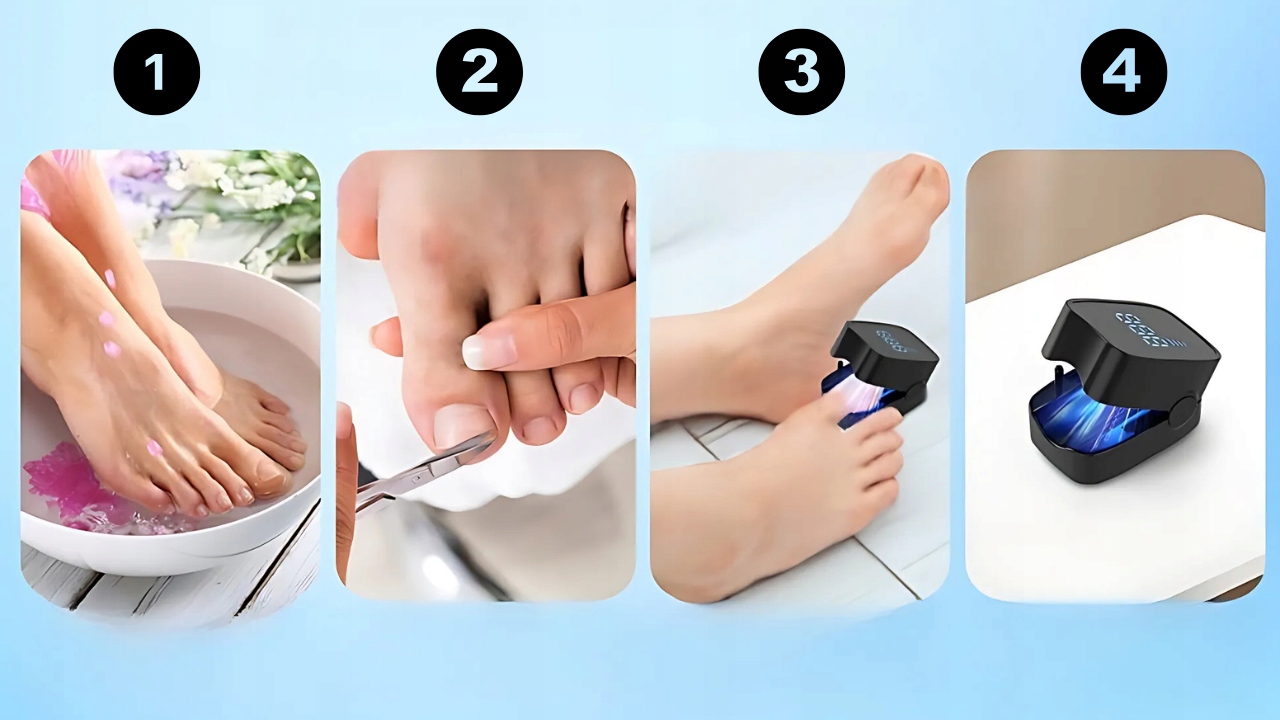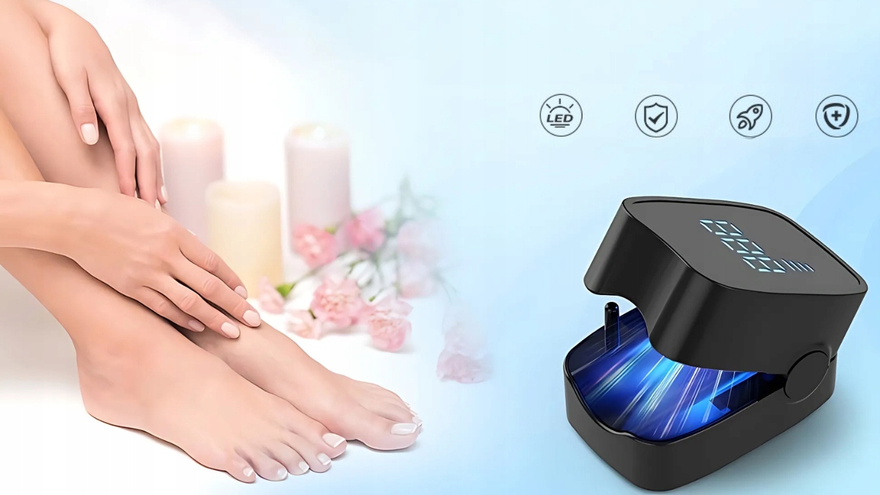 Это современное устройство для лечения микоза с помощью светодиодного света и инфракрасного b>, которое клиент получает в полном наборе с зарядным устройством USB-C, руководством пользователя в лаке на самом дне аукциона для загрузки и красочной коробки для домашней терапии без химии и боли.