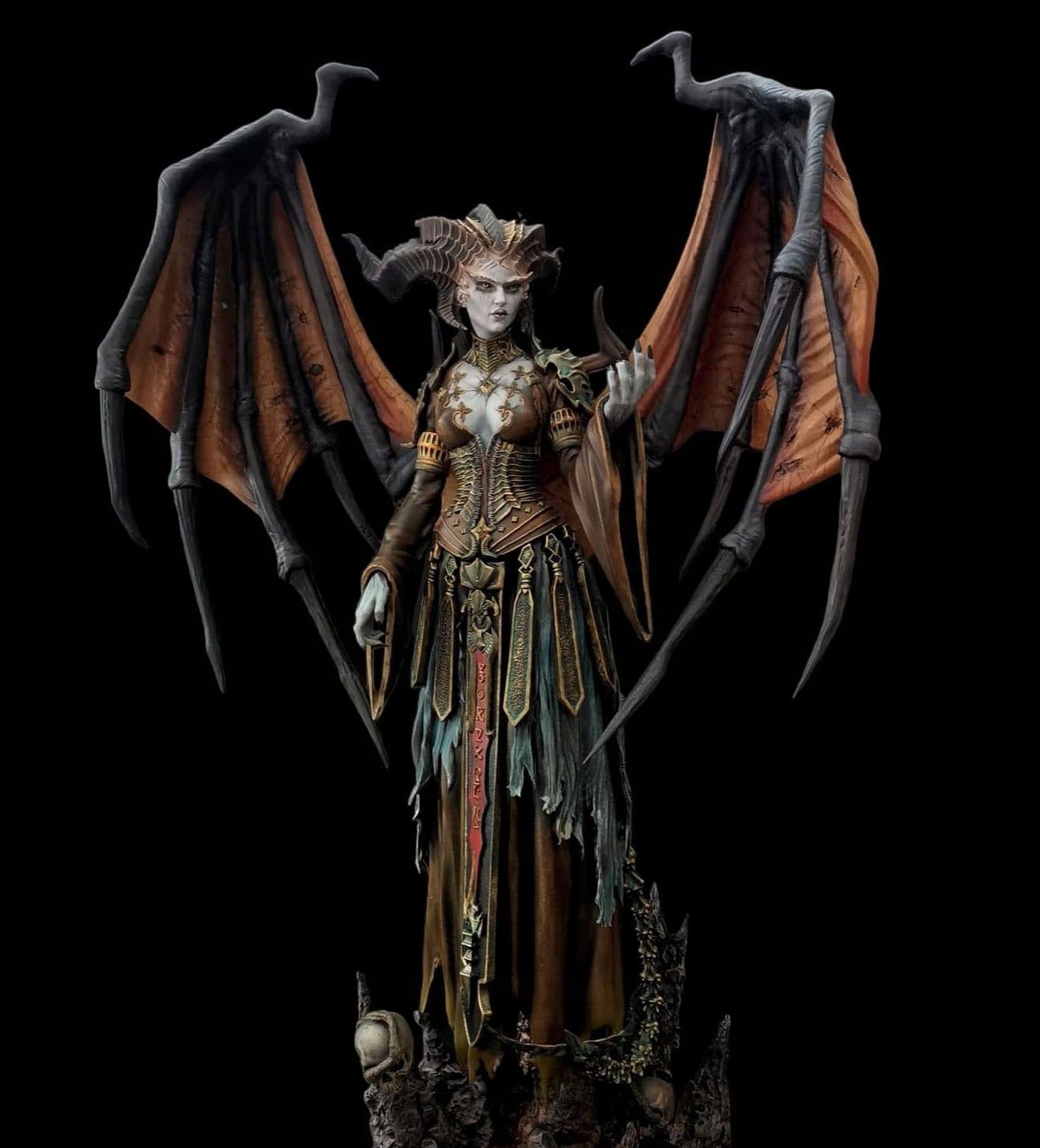 Красивая и жестокая демоническая Лилит вдохновила 3D-художника на создание этой невероятно впечатляющей фигурки. Хотя Лилит и имеет человеческое тело, внешне она совершенно отличается от представителей этой расы, главным образом, благодаря гигантским крыльям и раскидистым извилистым рогам, украшающим ее голову. Крылья окружают фигуру героини, создавая ауру ужаса и загадочности. Готическое платье с длинными рукавами, замысловатыми узорами и многочисленными декоративными элементами подчеркивает изящный силуэт демона. Проницательный взгляд Лилит способен мгновенно укротить и увлечь любого, кто встретится с ней. Глядя на зловещее выражение лица Лилит, мы подсознательно начинаем думать о скрытых темных намерениях Дочери Мефисто. Эта очаровательная статуэтка добавит неповторимого шарма любой коллекции фанатов Diablo!