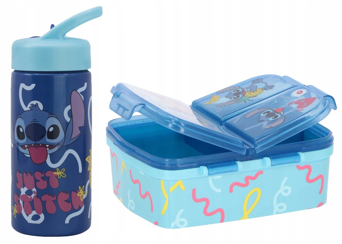 LILO I STITCH ПЛЯШКА З ТРУБКОЮ + XL ЛАНЧ-БОКС З ВІДДІЛЕННЯМИ STICZ