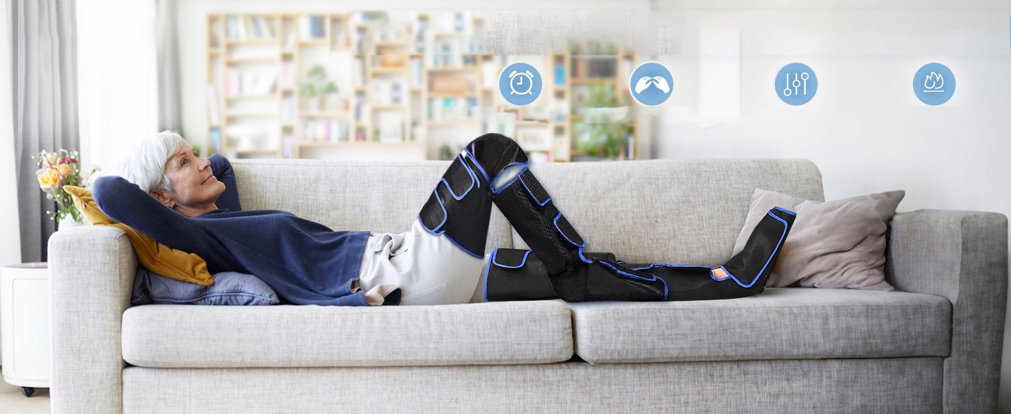 Размер этого компрессионного массажера с воздушной подушкой можно легко регулировать благодаря волшебной наклейке и 4 удлиненным ремням, которые адаптируются к разной окружности ног. Материал внутри мягкий и дышащий. Это идеальный подарок пожилым родителям или постоянно занятым на работе мужьям и женам.