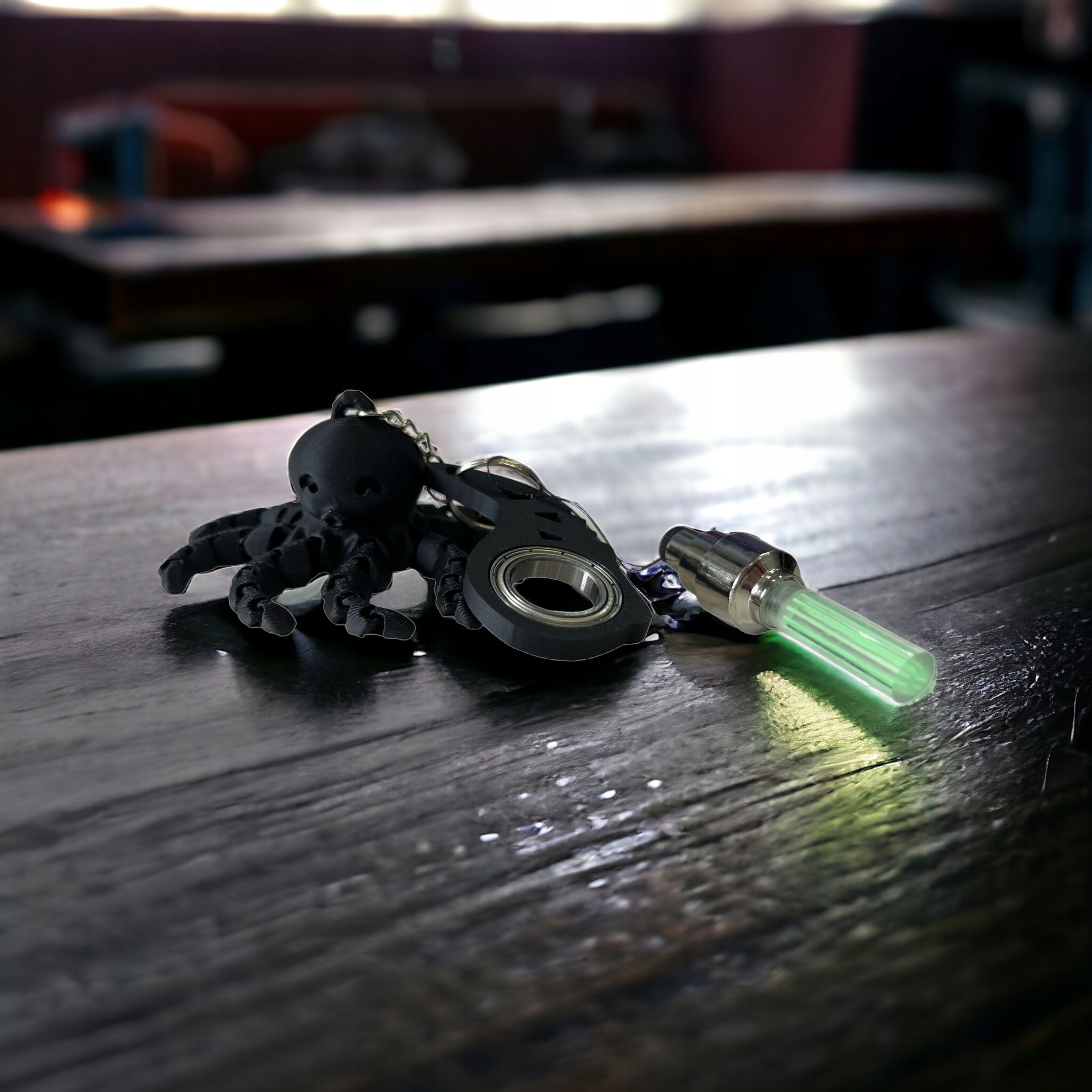 Кнопка для ключей + гибкий осьминог + светящийся ключ.