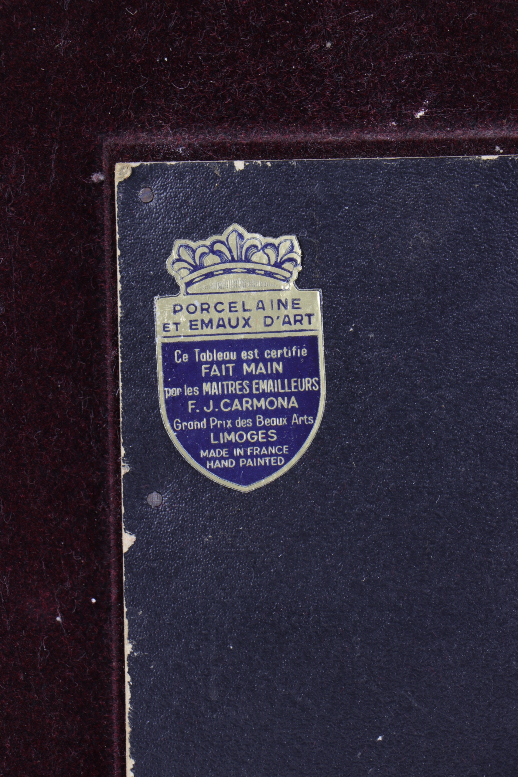 Справочник : Limoges fj cermonУсловие объекта Картинки, медная эмалированная табличка очень хорошее состояние без трещин и полостей. Рамка незначительных признаков использования видимых несколько завершенных и разрешенных брызг по краям кадра.