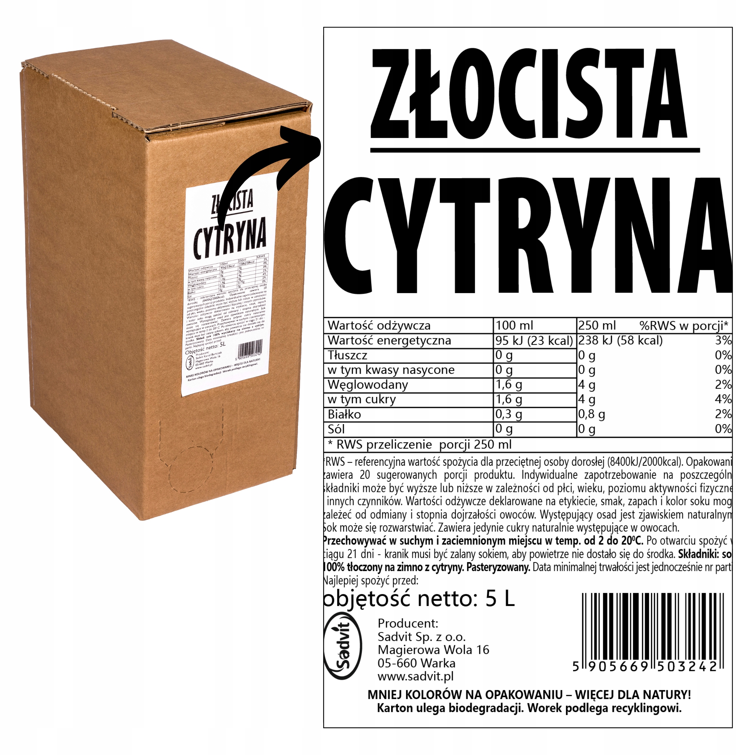 Лимонный сок 100% лимонный NFC 5L лимон для чая, напиток настойка