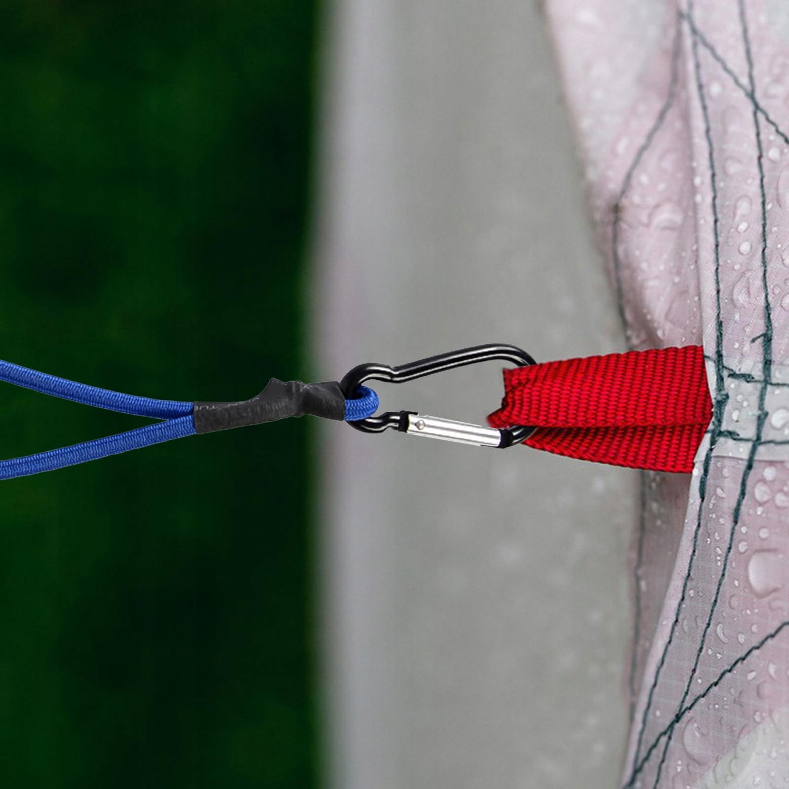 Lina do bungee z karabińczykiem. Baldachim do bungee w kolorze niebieskim