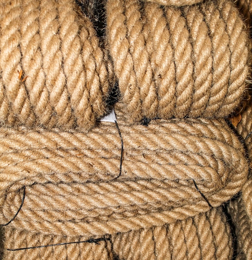 3-жильный джутовый канат, скрученный, изготовлен из джутовой пряжи с примесью масла, что облегчает производство и улучшает свойства каната