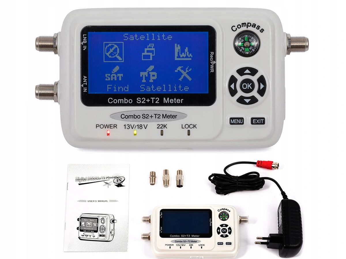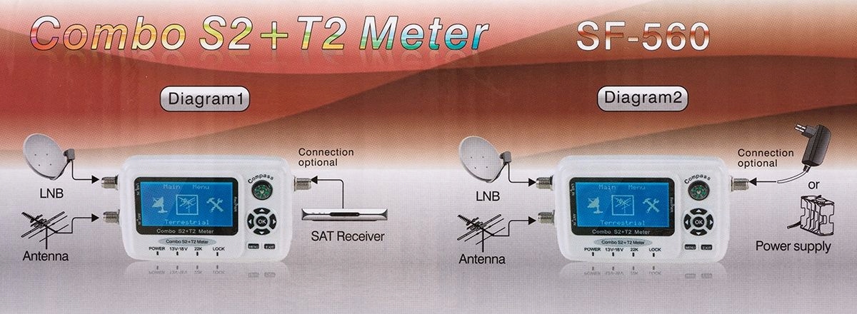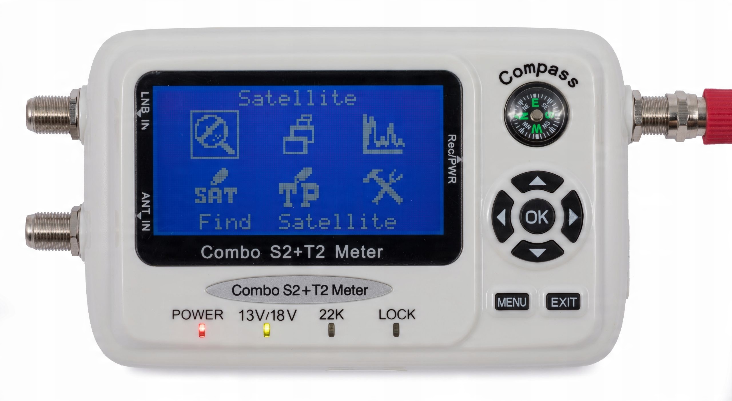 Простой спутник -сигнал модели Satlink SF500 с ЖК -дисплеем, который позволяет легко и точно устанавливать сателлитную антенну на правый спутник. Измеритель имеет дюжину или около того спутниковых положений (спутники + транспондеры), также возможно редактировать каждый параметр. Модель SF500 имеет измерение DVB -S2 - HD -канала