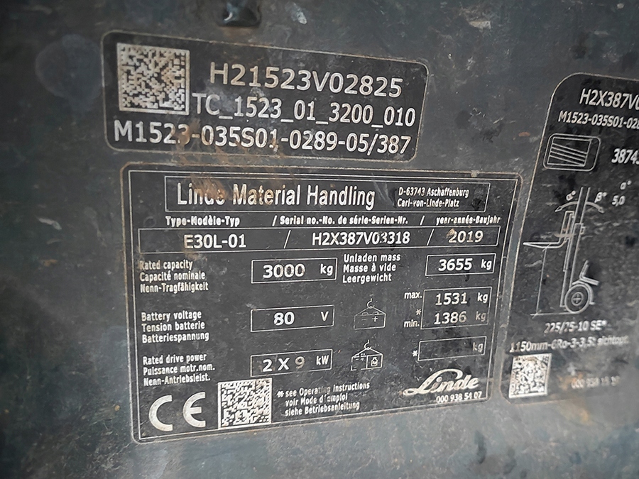 Linde E30L-01 Electric Voklift 3 Tony Duplex 2,89 M 2019