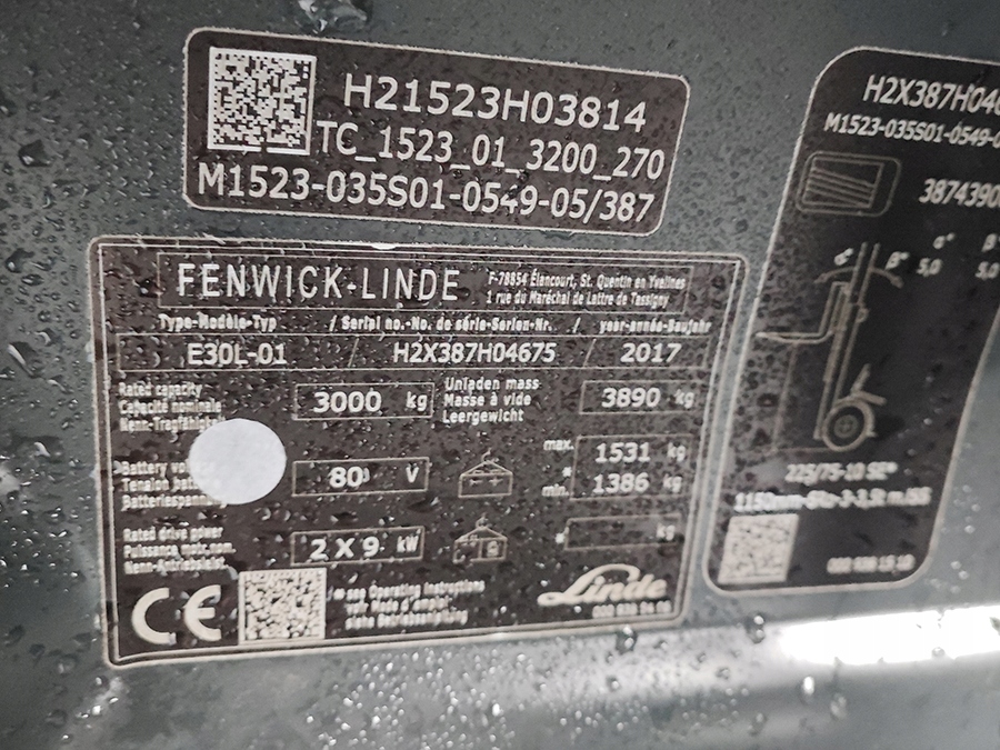 Linde E30L-01 Electric Voklift 3 Tony Duplex 5,49 M 2017