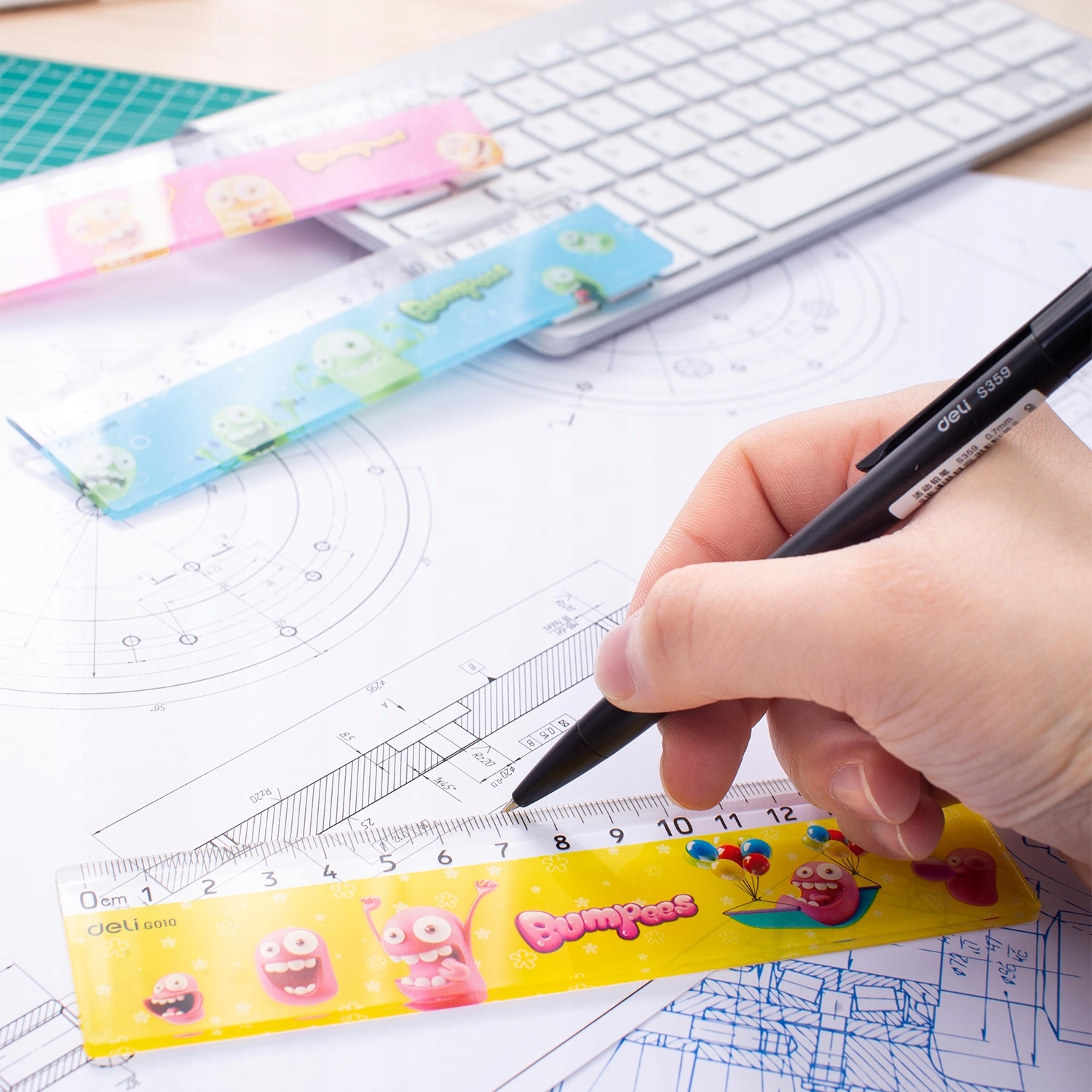 .✍️ Полупрозрачный дизайн позволяет более точно измерять и рисовать. Deli G01002 — уникальное предложение для юных энтузиастов, ценящих в работе оригинальность и яркие цвета!