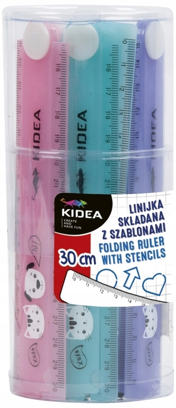 Складная линейка с шаблонами Kidea в четырех цветах: розовом, фиолетовом, мятном и сером. Линейка содержит 6 шаблонов различной формы: вишенки, звездочки, ноты, кружочки, стрелки и сердечки, которые можно использовать, например, для украшения блокнотов или открыток. В разложенном виде линейка имеет длину целых 30 см, а в сложенном виде благодаря компактным размерам помещается в любой пенал. Будет полезен как на уроках математики, для выделения тем, так и для рисования и декорирования.