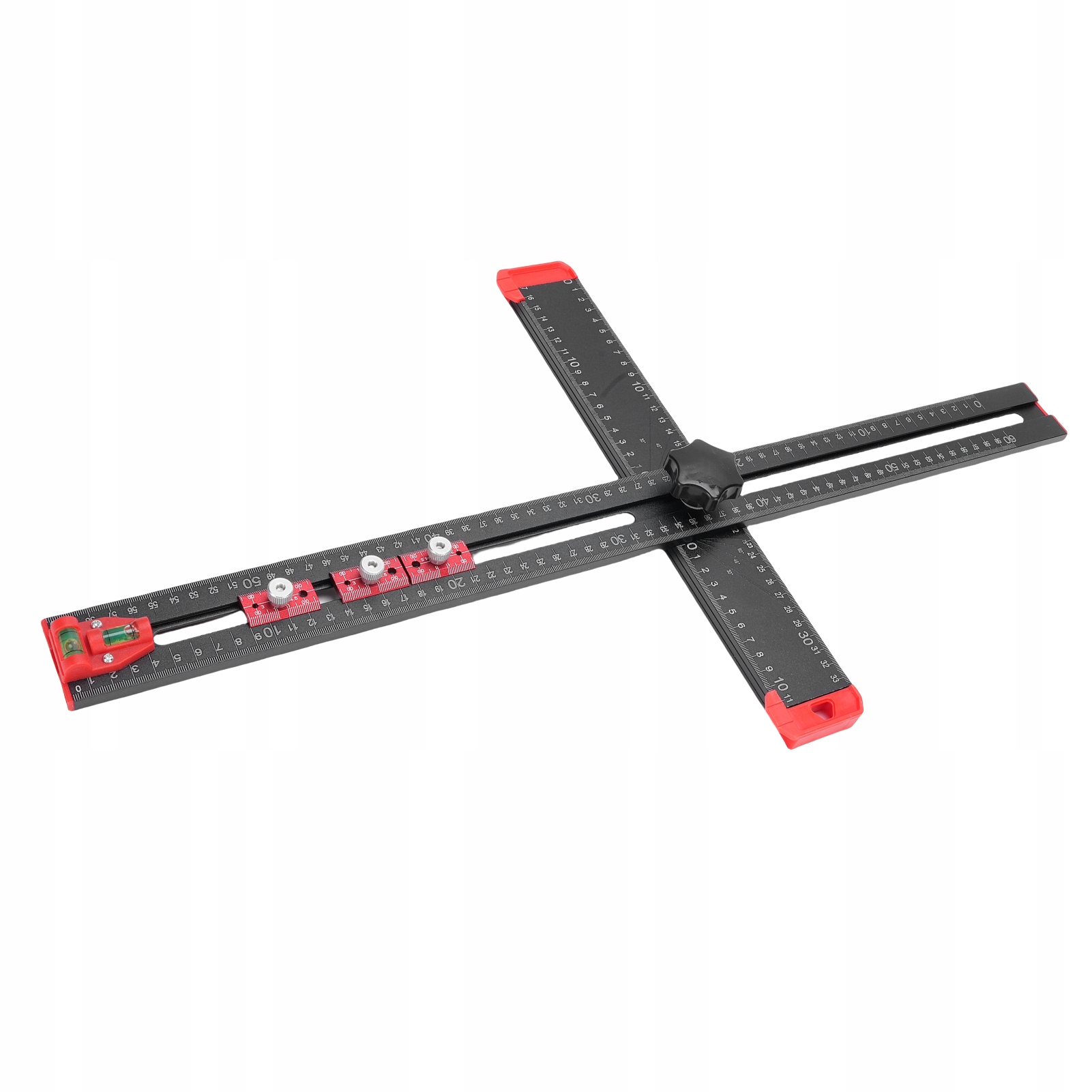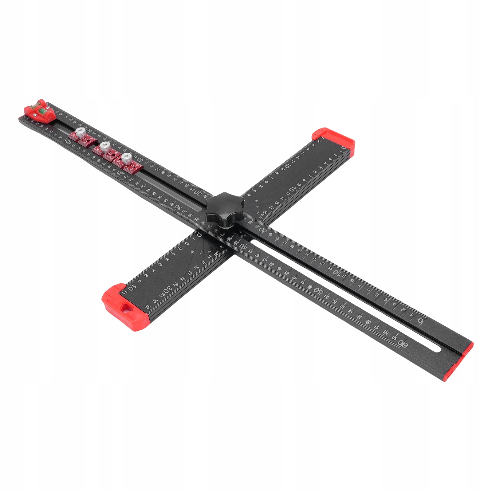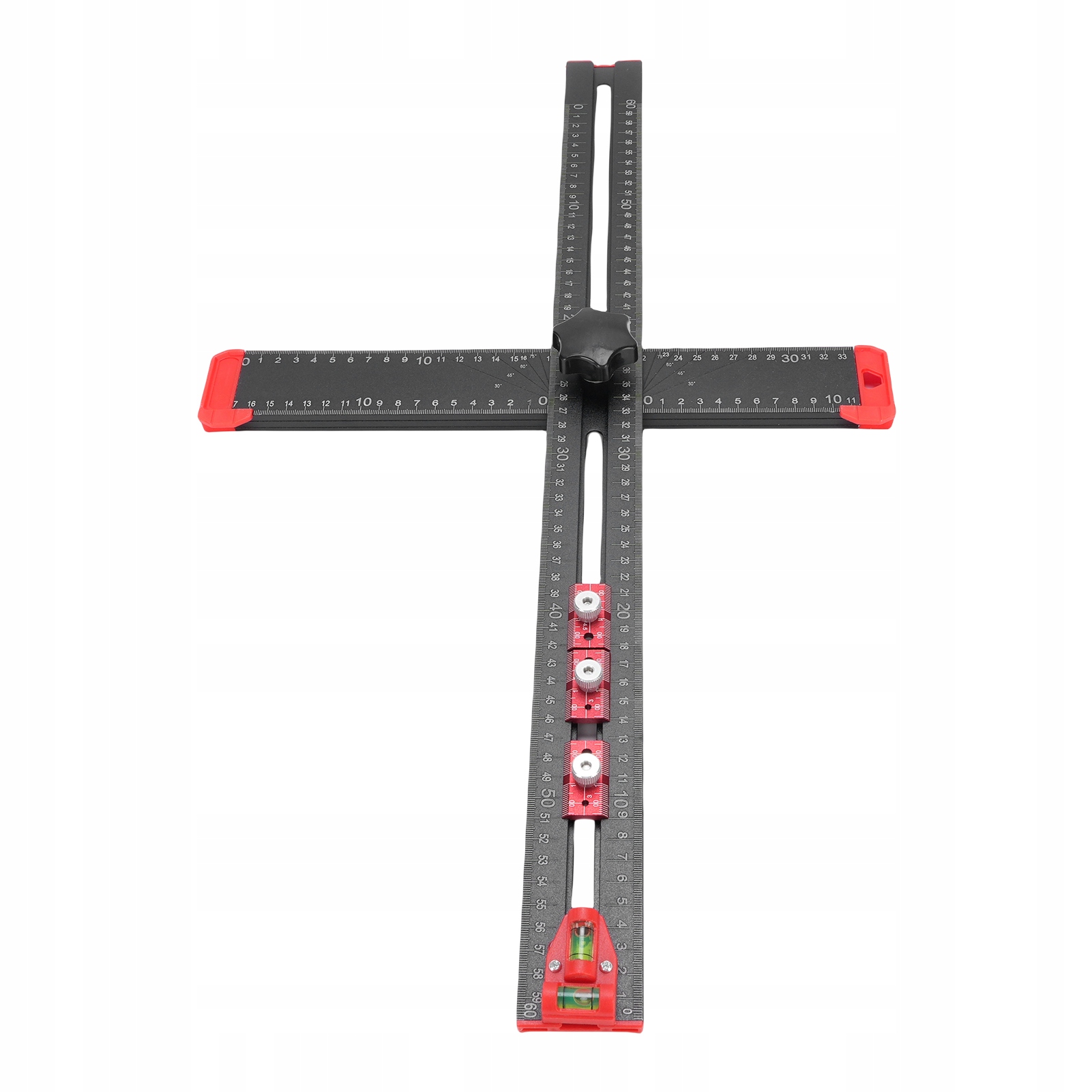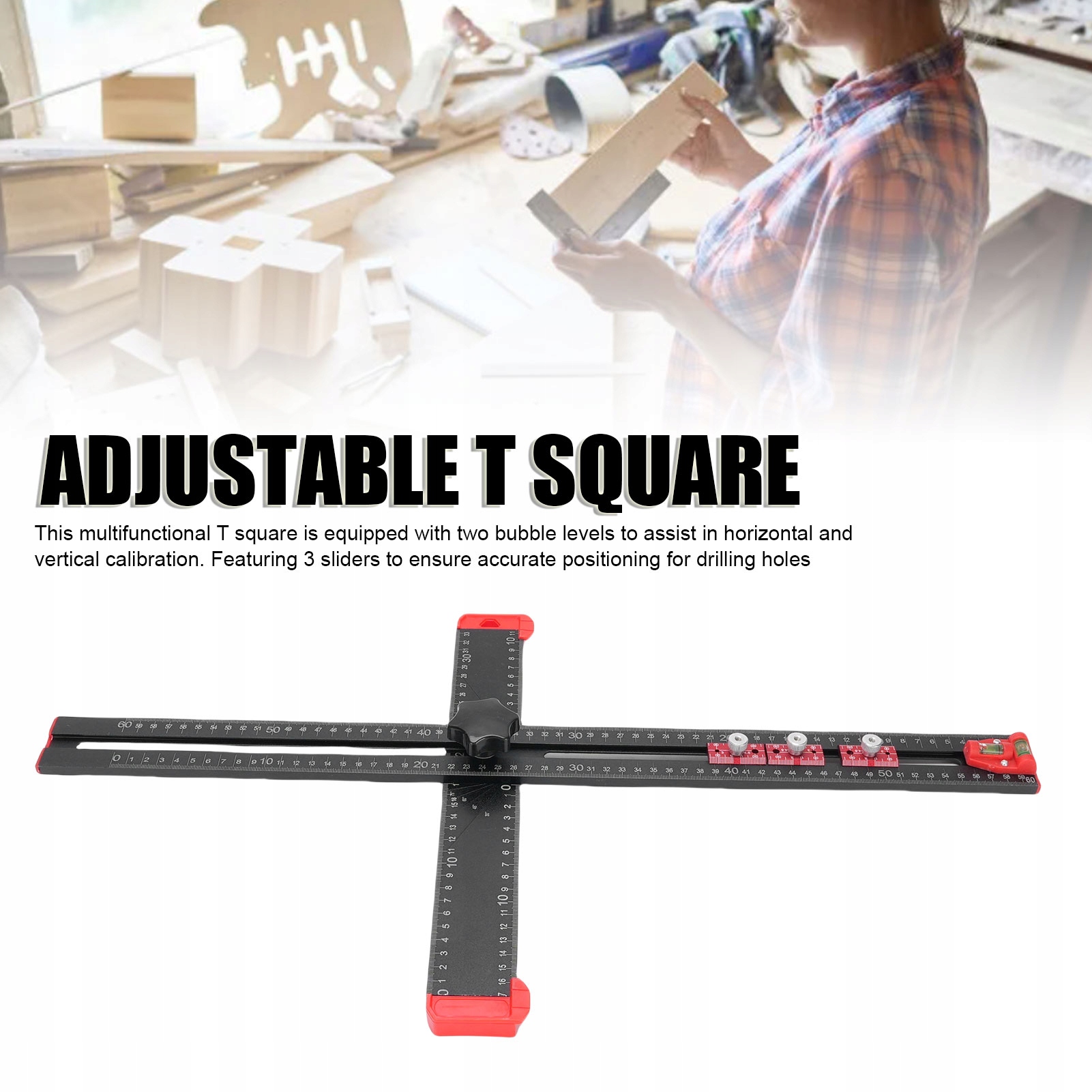2. [Уровни и ползунки] Этот многофункциональный Т-образный квадрат имеет два уровня для облегчения горизонтальной и вертикальной калибровки. Оснащен тремя ползунками для точного позиционирования при сверлении отверстий.