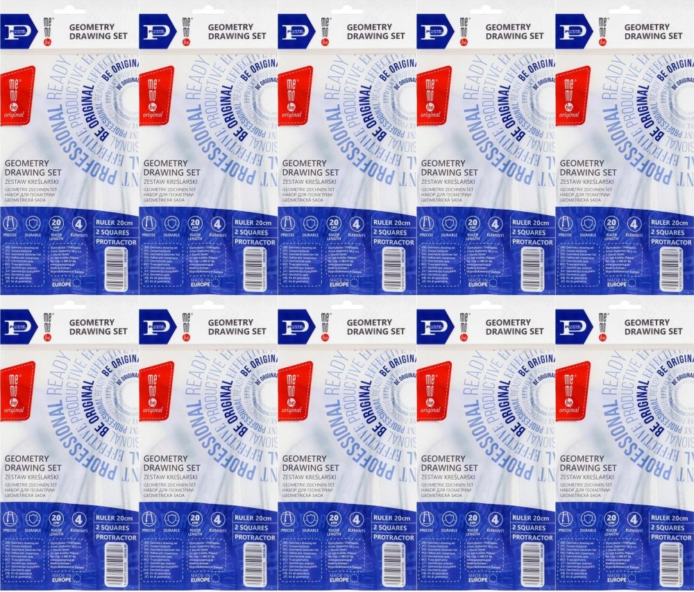 ✅ В каждый набор входят 2 стандартных прозрачных набора квадратов, транспортир 10 см/180 градусов и линейка.