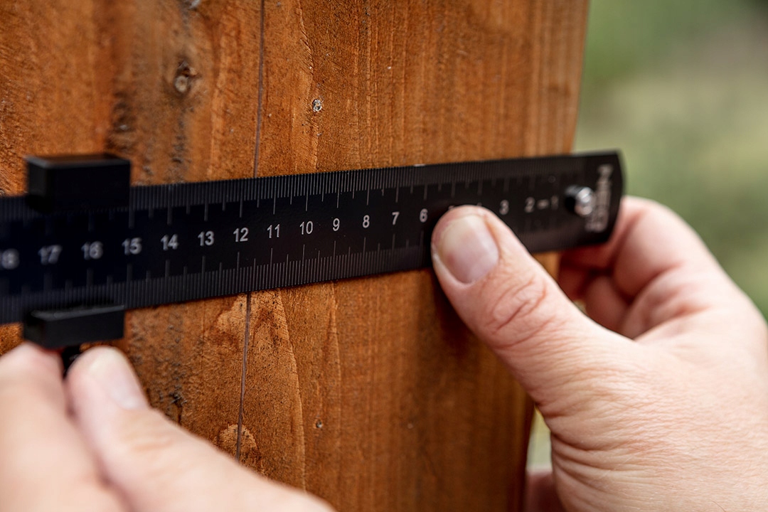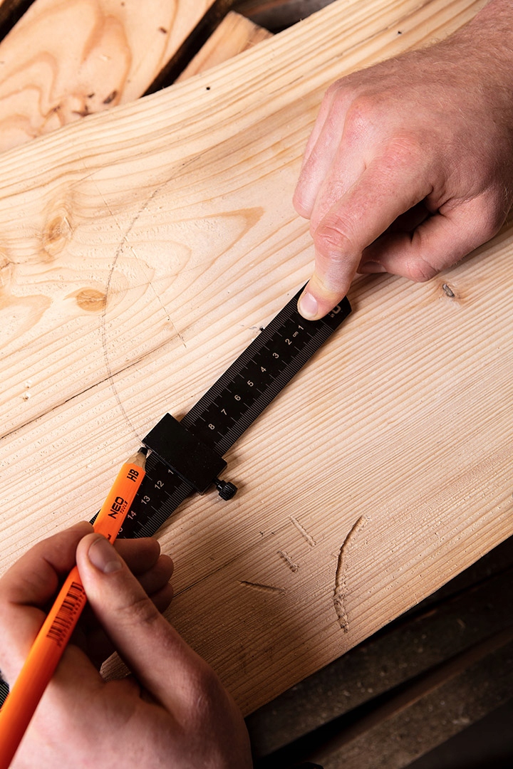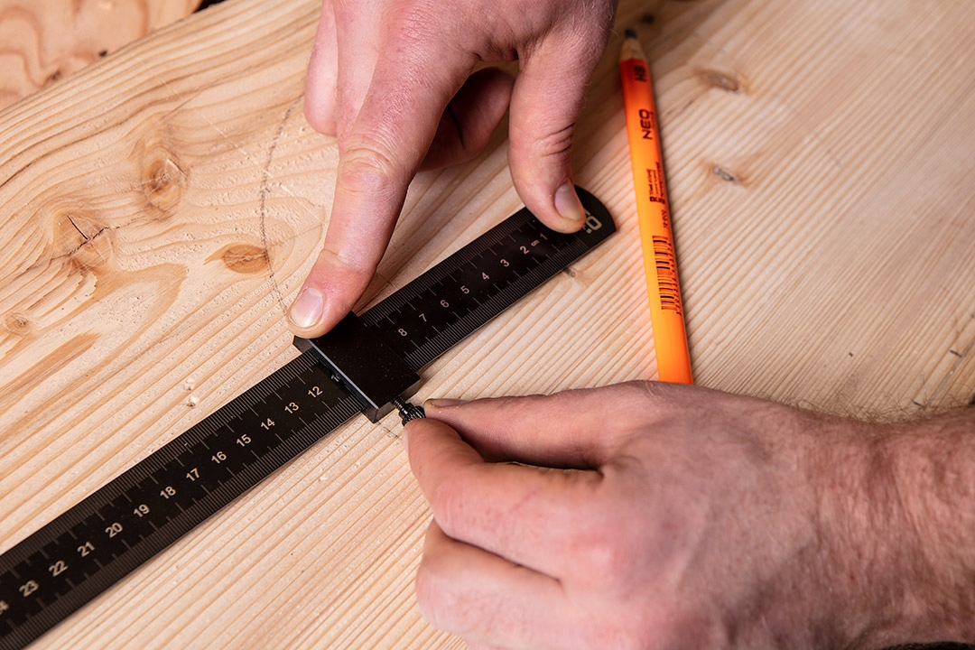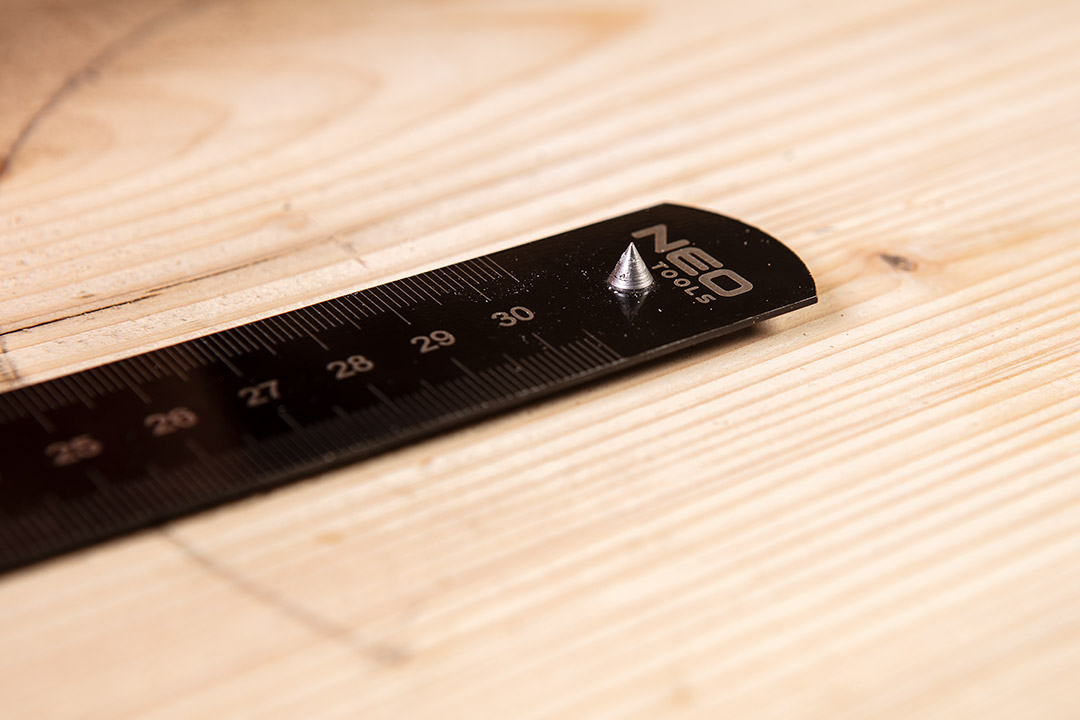 Линейка с упором NEO (арт. № 72-200) длиной 30 см со шкалой в см с обеих сторон. Линейка изготовлена из нержавеющей стали, регулируемый упор — из алюминия.