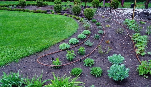 - капельная линия с 16 мм 50 млн. Компенсацию с капельницей каждые 33 см с расходом воды 2,0 л/ч от эмиттера