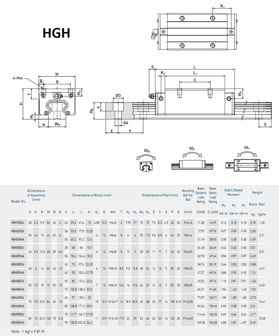HGR15 – направляющие секциями до: 60см, до 140см, до 280см