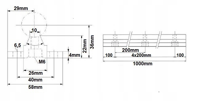 ✔️ Алюминиевая опора:Анодированный алюминий – легкий, прочный, с готовыми отверстиями для крепления. Обеспечивает устойчивость направляющей даже при большой нагрузке.
