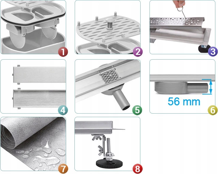Широкий диапазон регулировки высоты, позволяющий подогнать слив под поверхность пола.