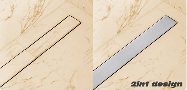 - Дизайн 2В1 - Реверсивная решетка позволяет можно приклеить плитку или использовать цельную крышку из матовой нержавеющей стали.