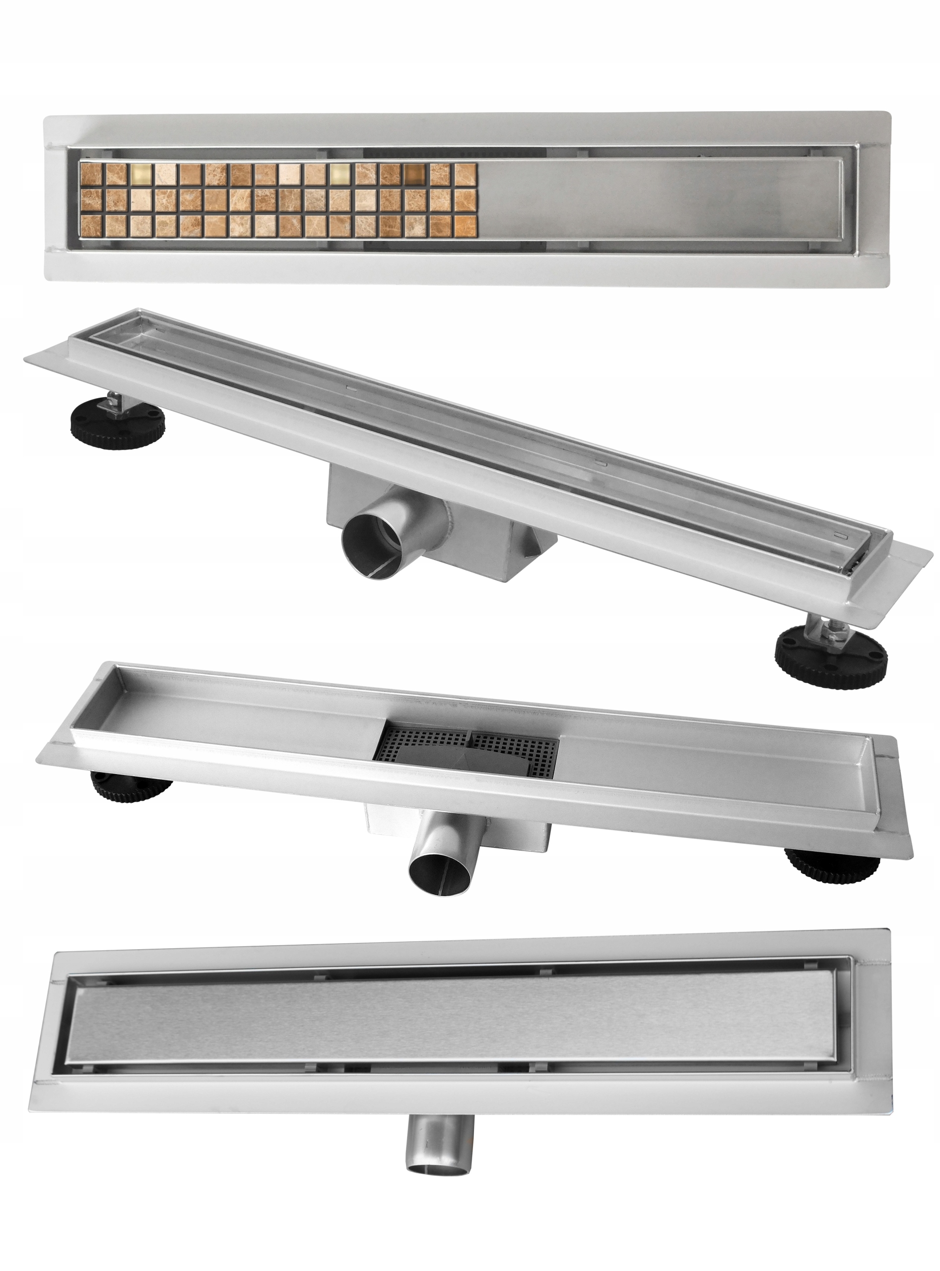 Комплектный линейный трап для душа 100 см х 7 см + решётка двусторонняя. Решетка для приклеивания с одной стороны к любой плитке после переворачивания, массивная сталь