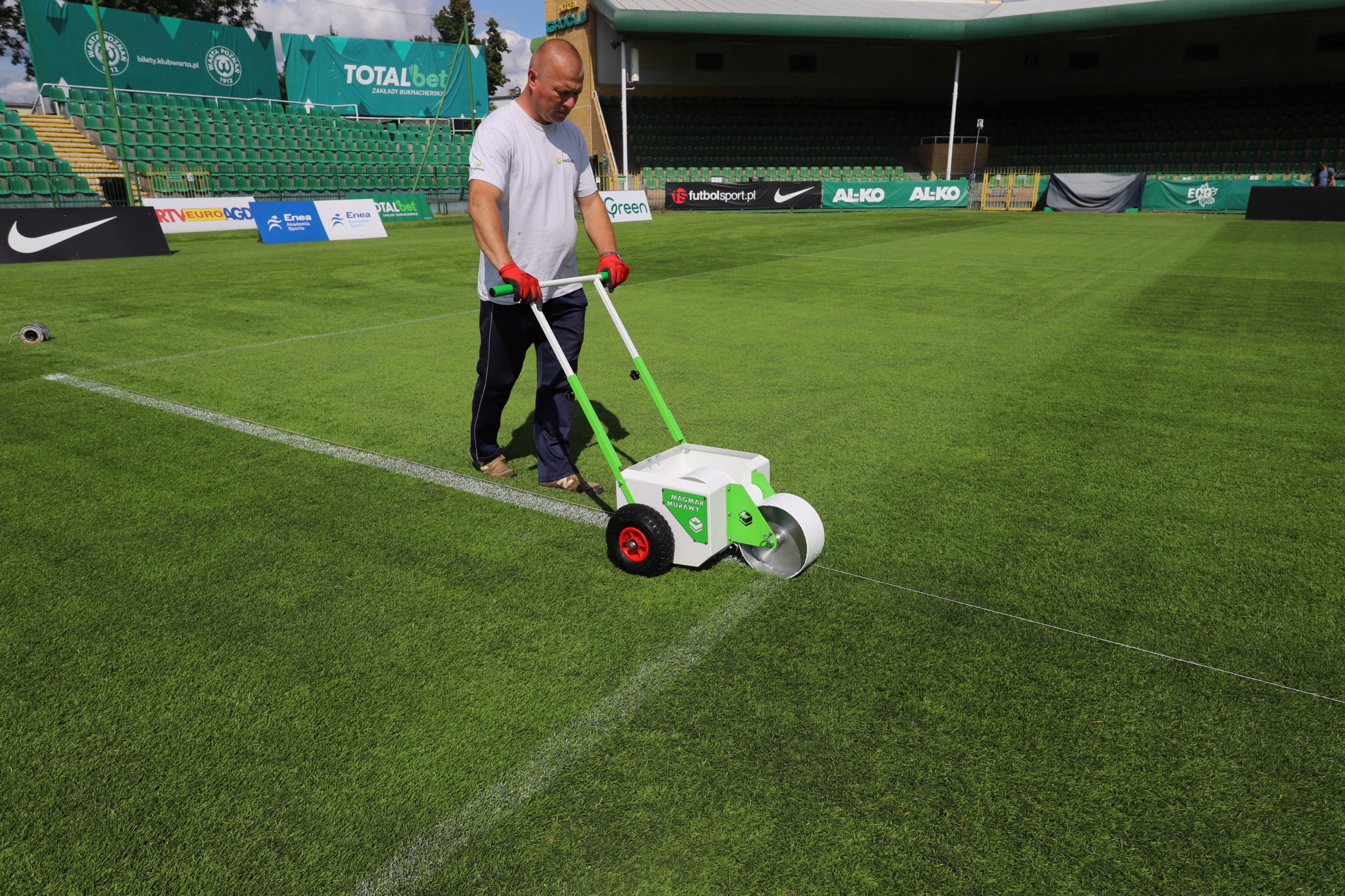 Специально разработанная покрасочная тележка используется для покраски линий на травяном поле. Благодаря нашей машине для рисования линий вы сможете быстро и легко создавать идеальные ровные линии на поле. Тележка MAGLINER оснащена валиком, который легко и равномерно наносит краску на газон, создавая линии постоянной ширины 12 см. Прочная, прочная рама и надувные колеса позволяют уверенно ездить с коляской по траве. Танк позволяет покрасить полноразмерное футбольное поле. Имеет ручки для рисования кругов, адаптированные для правшей и левшей. Удобно чистить. После окончания работы промойте его теплой водой. Коляску мы разработали сами. Мы практики. Мы работаем с продуктами, которые создали сами!