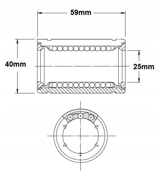✔️ Закрытый линейный подшипник LM25UU представляет собой прецизионный элемент качения, предназначенный для линейного перемещения по направляющим роликам диаметром 25 мм.