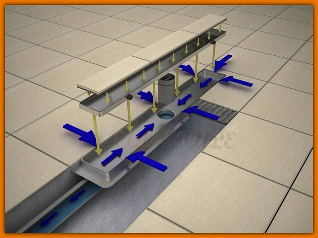 Линейный слив для ванной комнаты — элегантное решение для облицованных плиткой душевых или ванных комнат. Это инновационный продукт. Готов к укладке плитки. Имеет множество преимуществ: