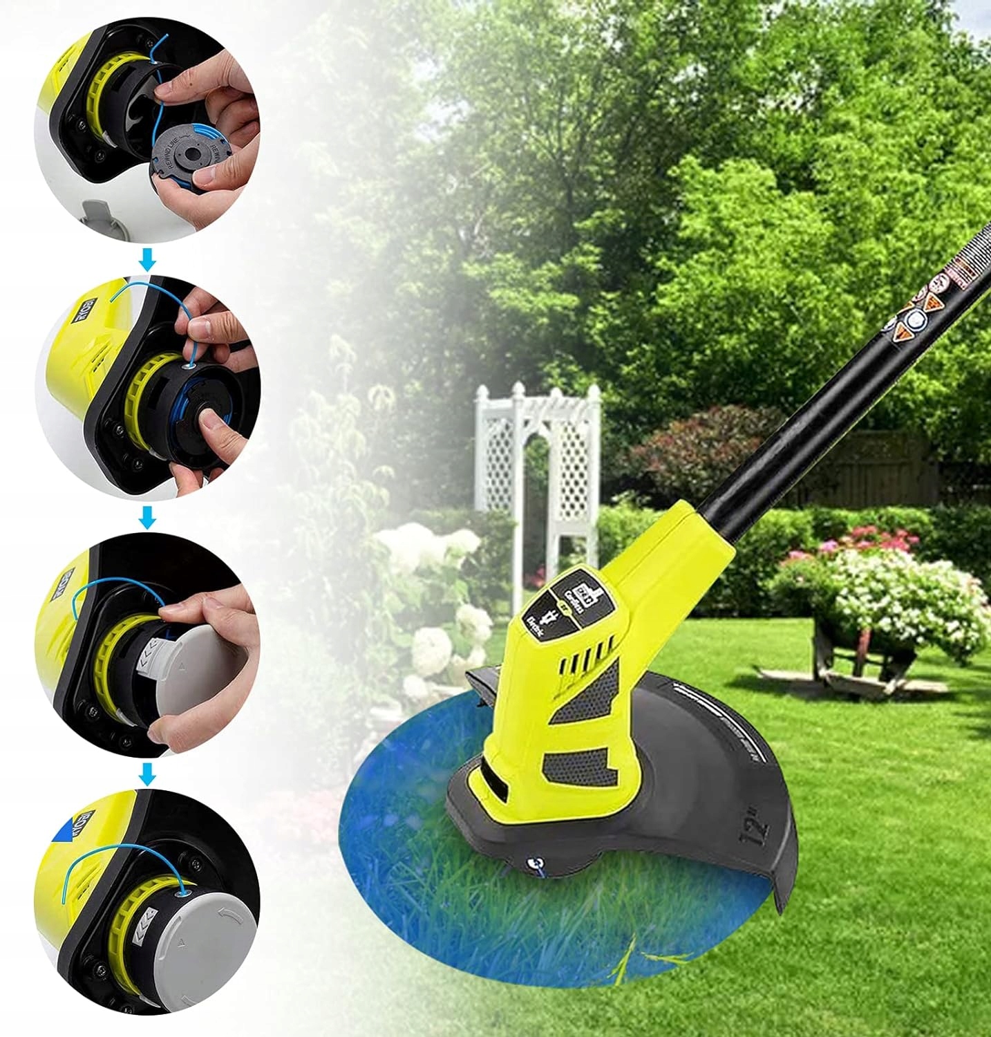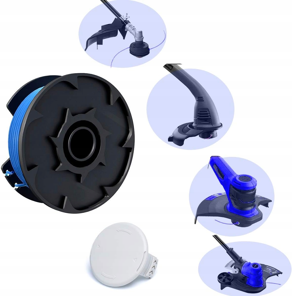 resse Триммер, который вращается на высокой скорости и выпускает линию резания. Катушка вставлена в корпус катушки и остается на месте с помощью катушки. Вы должны носить защитные очки все время. Отсоедините инструмент перед заменой, установкой или демонтажей аксессуаров. Это подходит только для тонкой травы сорняков. Сильные и сильные сорняки должны быть разрезаны лезвиями. Это не вписывается в рыболовную линию других брендов. Держите подальше от детей до 3 лет