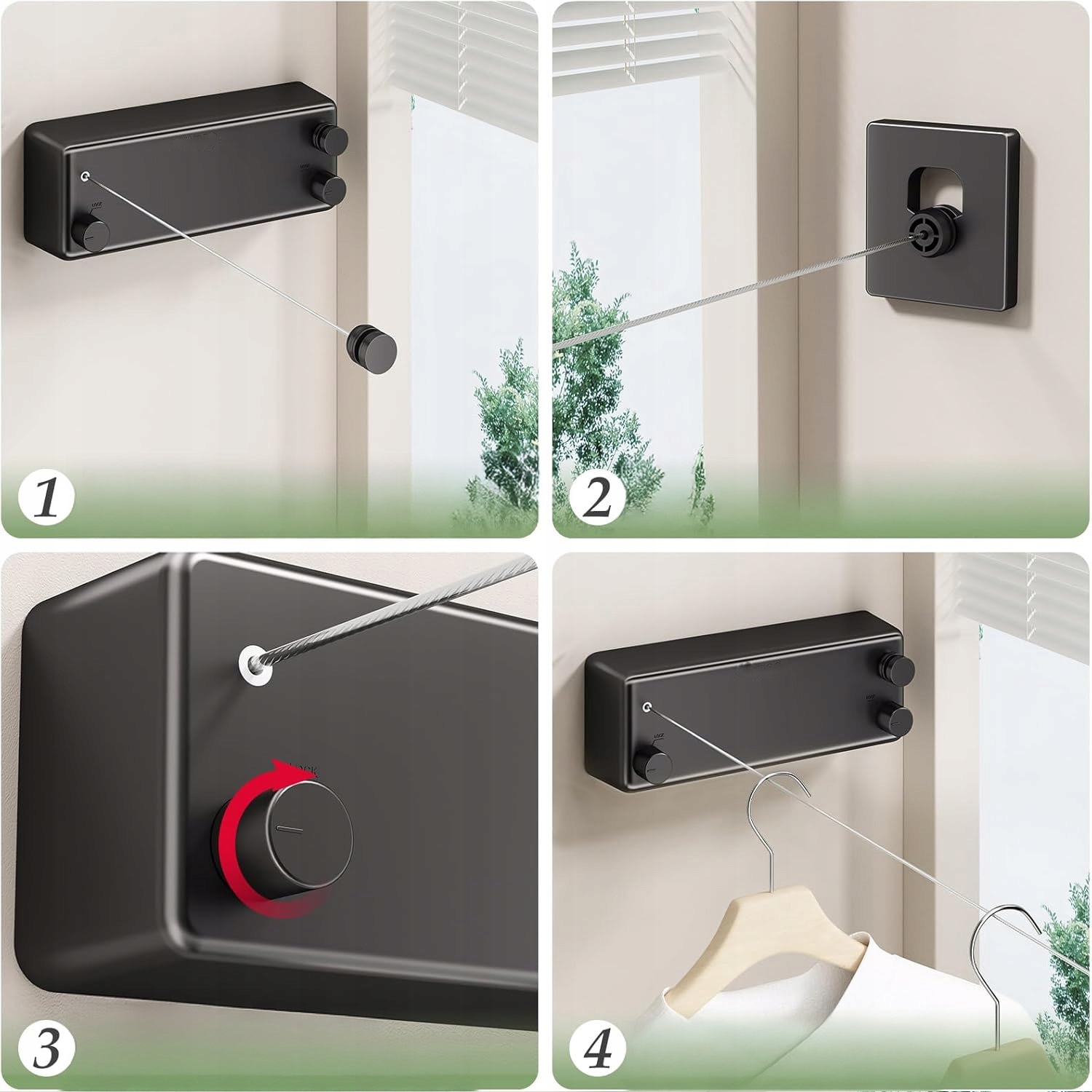 ▶ Сталь 304. Это водонепроницаемое, устойчивое к ржавению, долговечна, устойчива к сломанию, долговечнику и имеет долгий срок службы. Ubrań Ma 4,2 M Długości I Posiada 2 Liny, Z których każda może udźwigną 20 кг, co pozwala na powieszenie większej ilości ubrań. Nadaje Się do Wieszania Ubrań, Kołder, Koców, Ręczników I Innych Codziennych Przedmiotów.