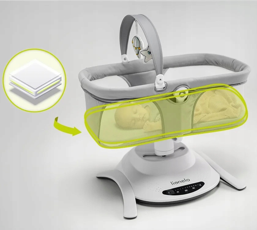При проектировании работы качалки Lionelo Bella Set 2in1 мы моделировали ее движения, ощущаемые ребенком на руках родителей. Качалка имеет 6 уникальных покачивающих движений – 5 основных режимов и дополнительный, автоматический, который меняется каждые 16 секунд. Благодаря многодорожечному покачивающему движению Белла отражает естественный ритм родительских объятий, делая качалку привычным и дружелюбным местом для ребенка. Выбор одной из 5 скоростей качания позволит регулировать интенсивность в соответствии с предпочтениями и настроением ребенка.