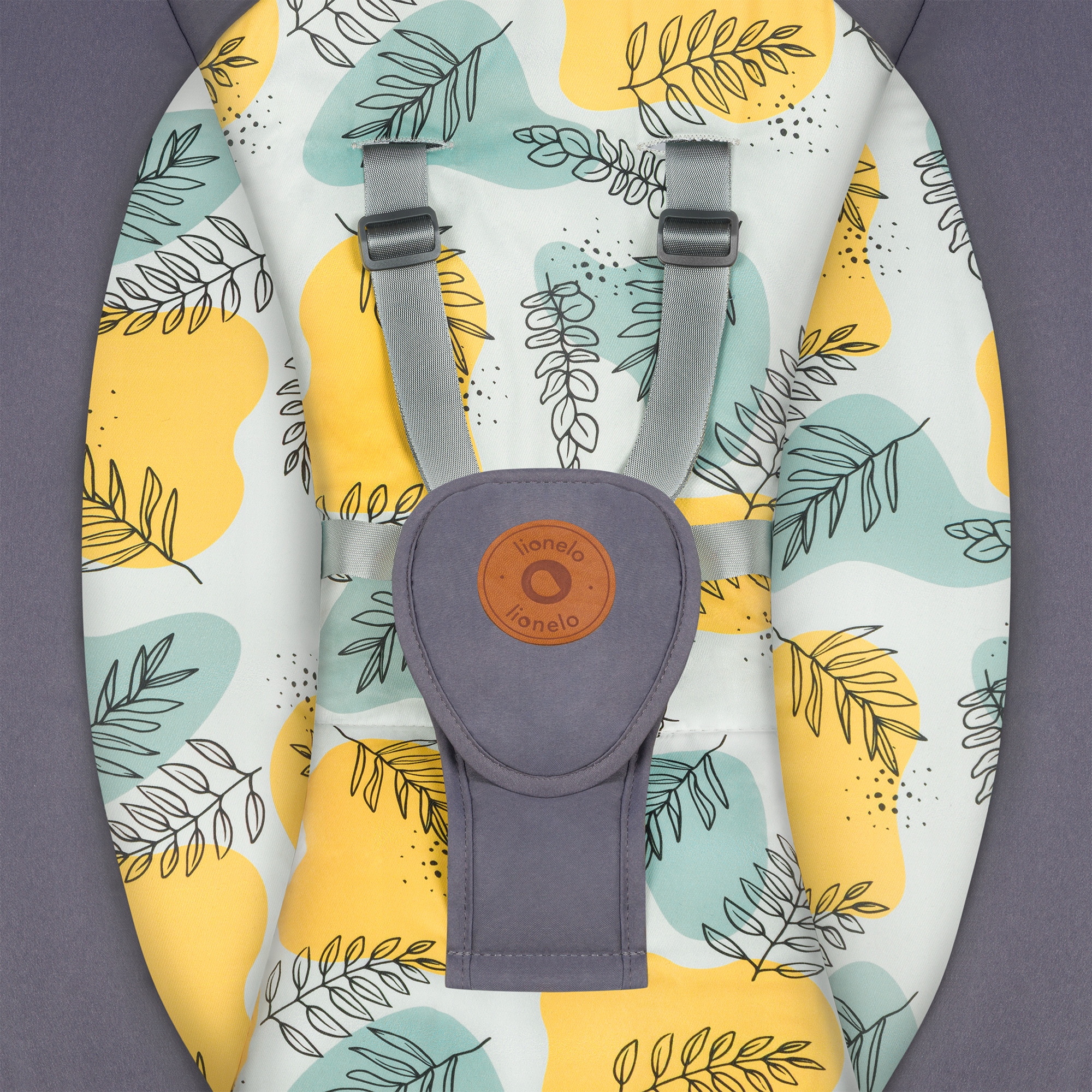 Шезлонг-качалка Lionelo Ralf имеет замок, который позволяет легко трансформировать ее из качелей в шезлонг. Благодаря двухступенчатой регулировке наклона спинки ребенок может оставаться в положении лежа — идеальном для отдыха, или в полулежачем положении, когда он более активен и интересуется миром.