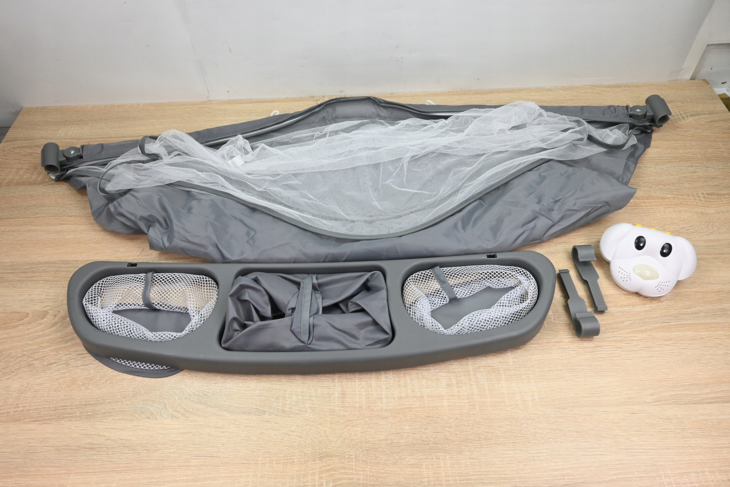 Обратите внимание на одну сторону кроватки (короче) не ломается, нет двух висящих игрушек.